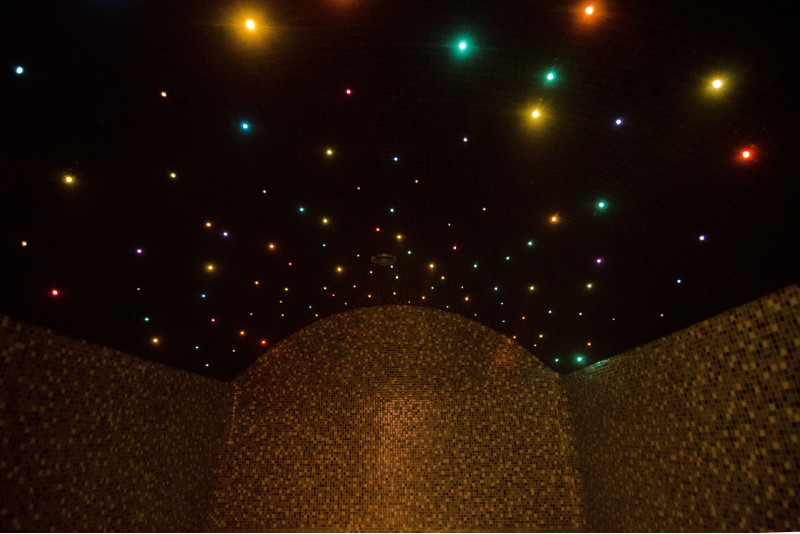 Valaistus - vaikuttava valokuitujärjestelmä "tähtitaivas". Se näyttää erityisen hyvältä tummalla katolla. Valaistuksen väriä voidaan muuttaa.