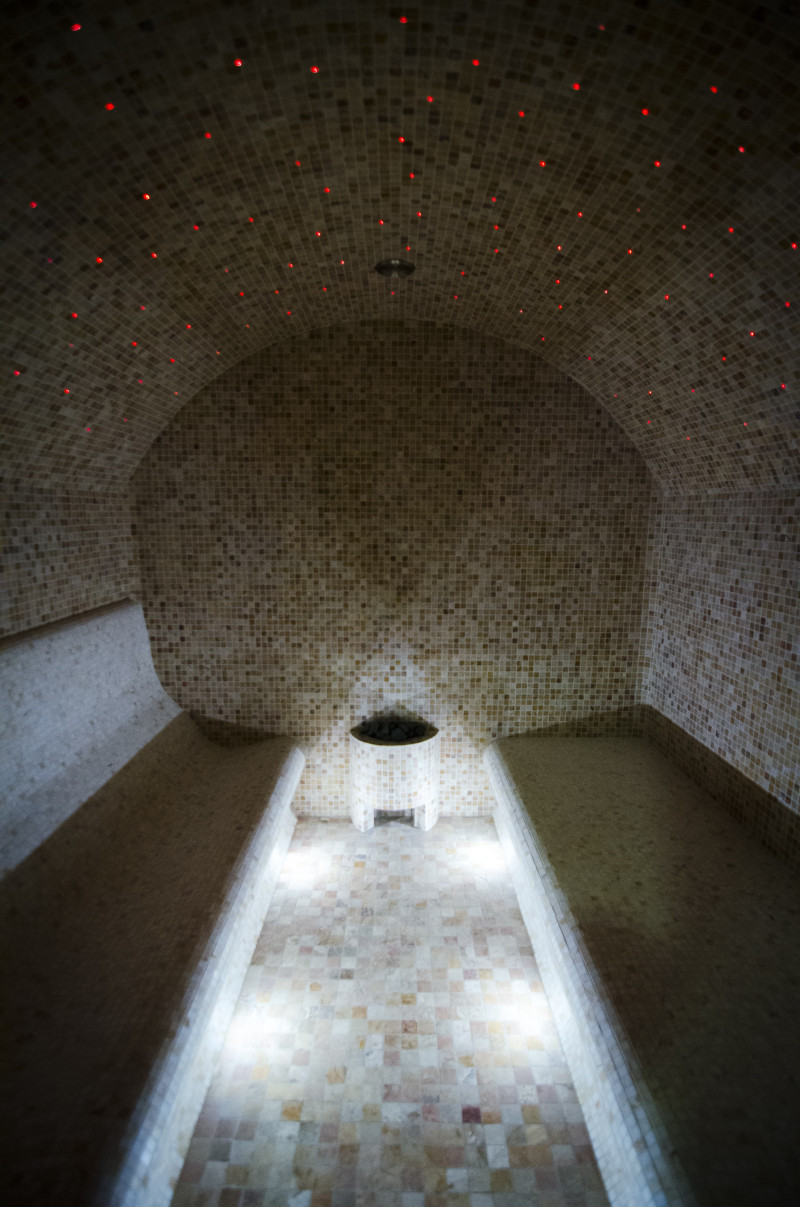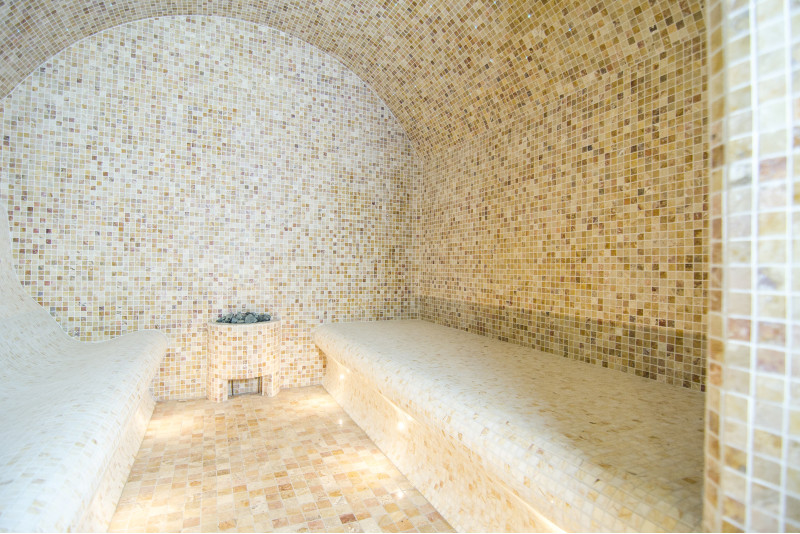 Sauna on varusteltu kuuluisan Harvia-merkin luotettavilla laitteilla, karkaistusta lasista valmistetut saunaovet erikoisalumiinirungolla on suunniteltu erityisesti höyrysaunoja varten, kestävät lämpötilan vaihteluita.
