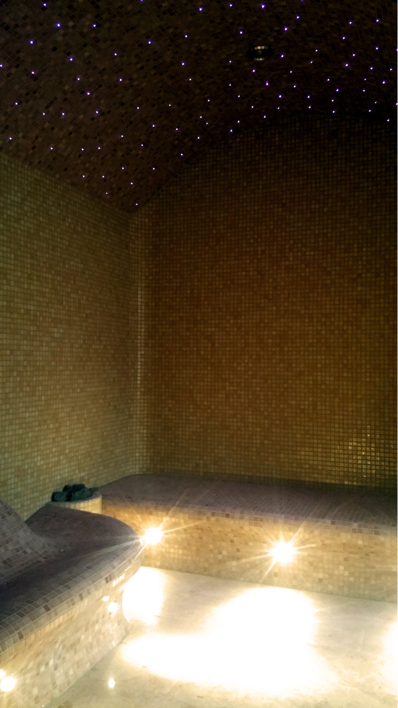 Kuituoptinen valaistusjärjestelmä kattoon - "tähtitaivas". Penkkien alla on LED-valaistus, joka valaisee lattiaa.