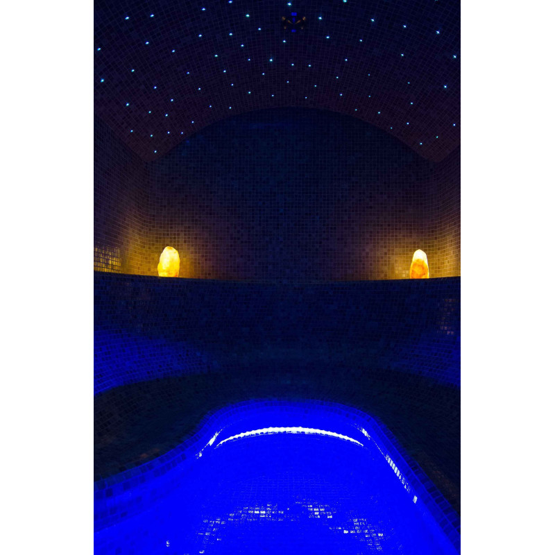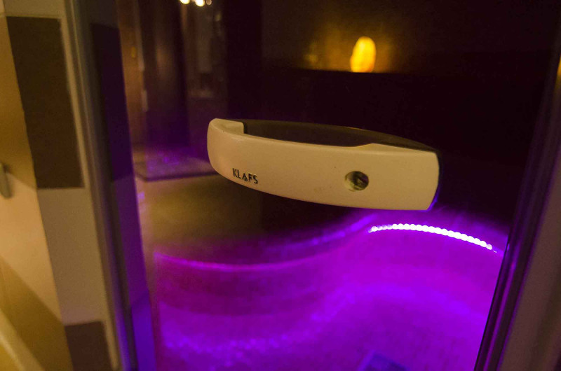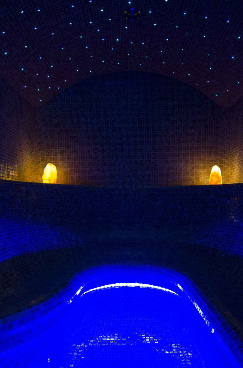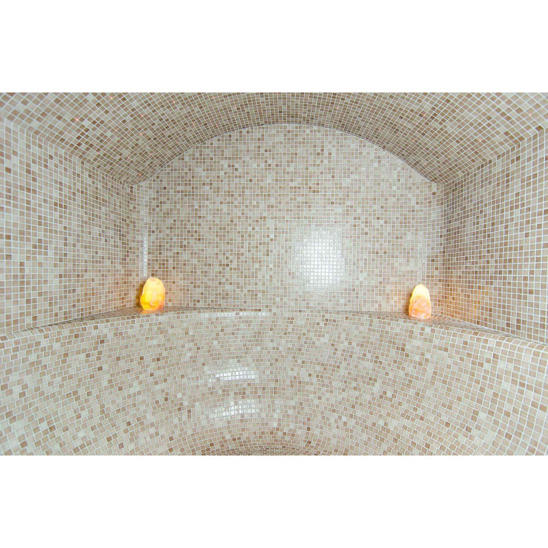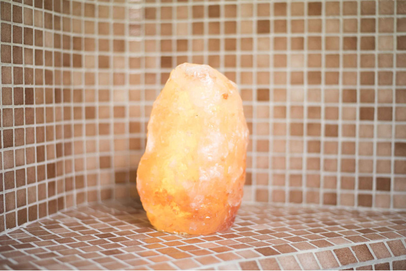 Sauna on koristeltu Himalajan suolalampuilla, jotka paitsi tuovat valoa ja viihtyisyyttä, myös ovat hyödyllisiä terveydelle. Lämmitetyt suolakiteet lähettävät negatiivisia ioneja, jotka toimivat tasapainottajana ja luovat luonnollisen ilmaston esimerkiksi vuoristossa, meren lähellä tai vesiputouksilla.