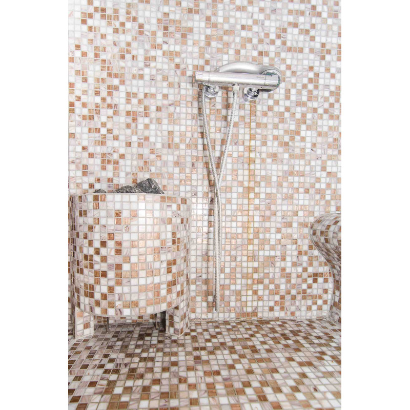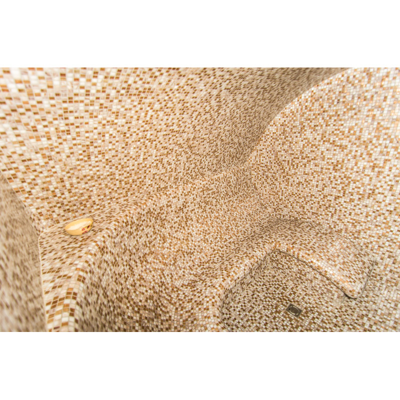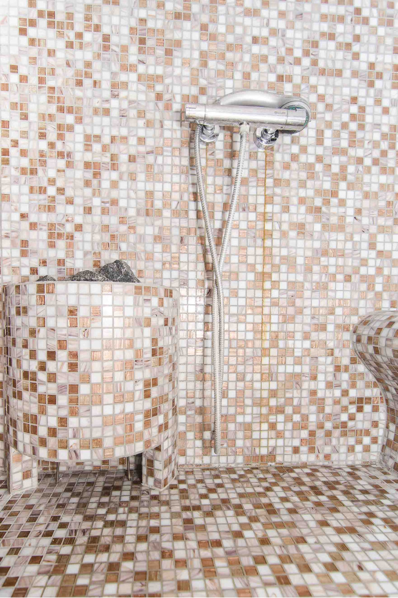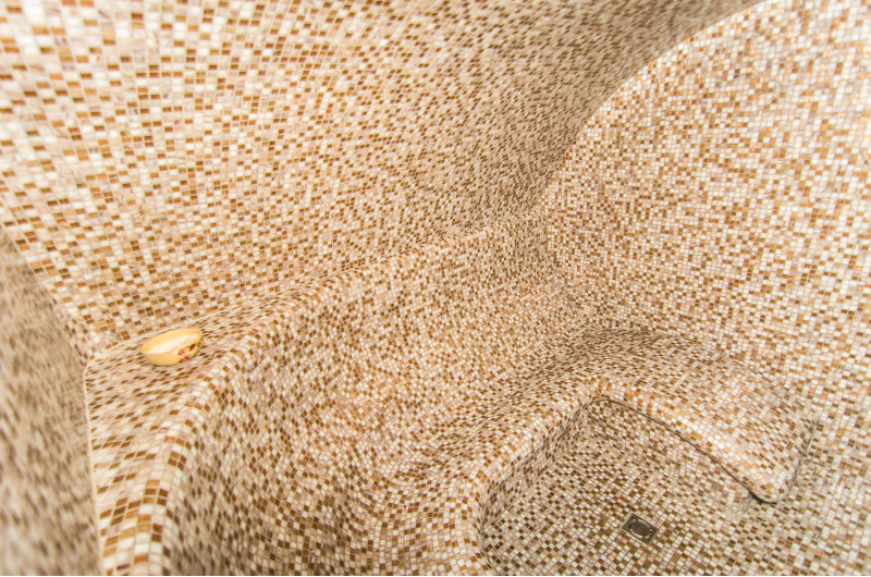Viimeistely - neutraalinväriset murskatut lasimosaiikkilaatat.