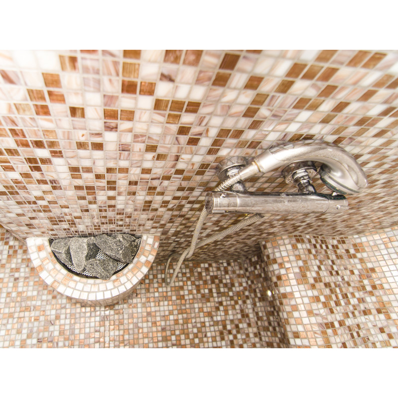 Höyrysaunan lauteet, seinät ja katot valmistetaan yksilöllisesti erikoispuristetusta polystyreenistä. Katto on kaikille höyrysaunoille tyypillinen kaarimuoto.