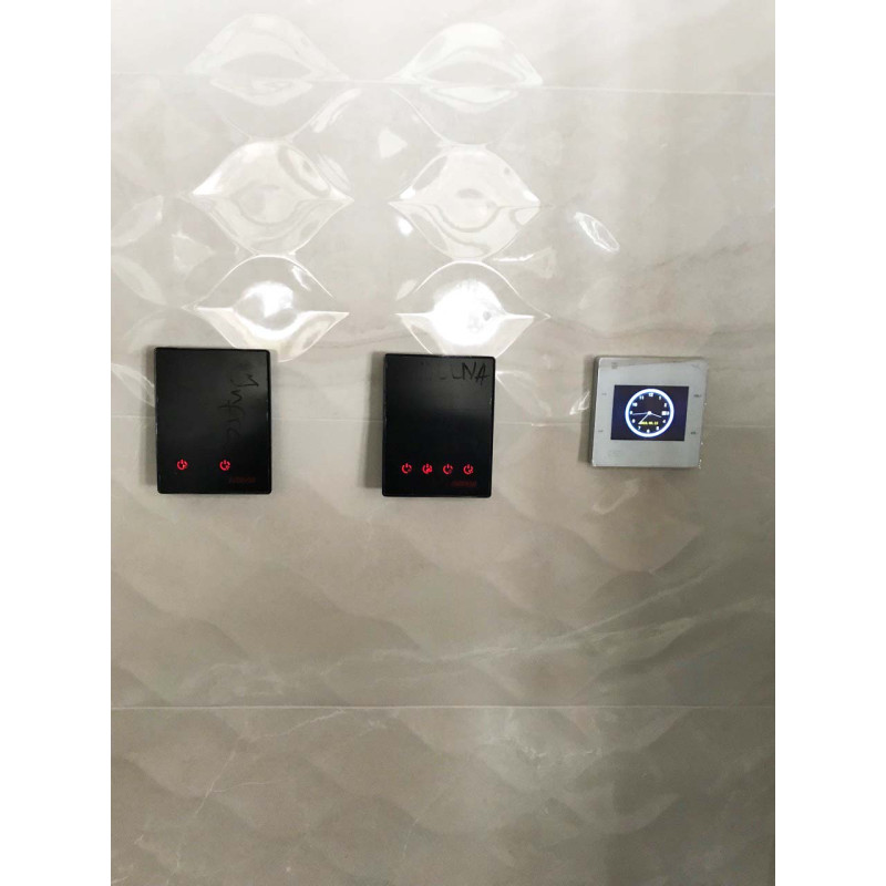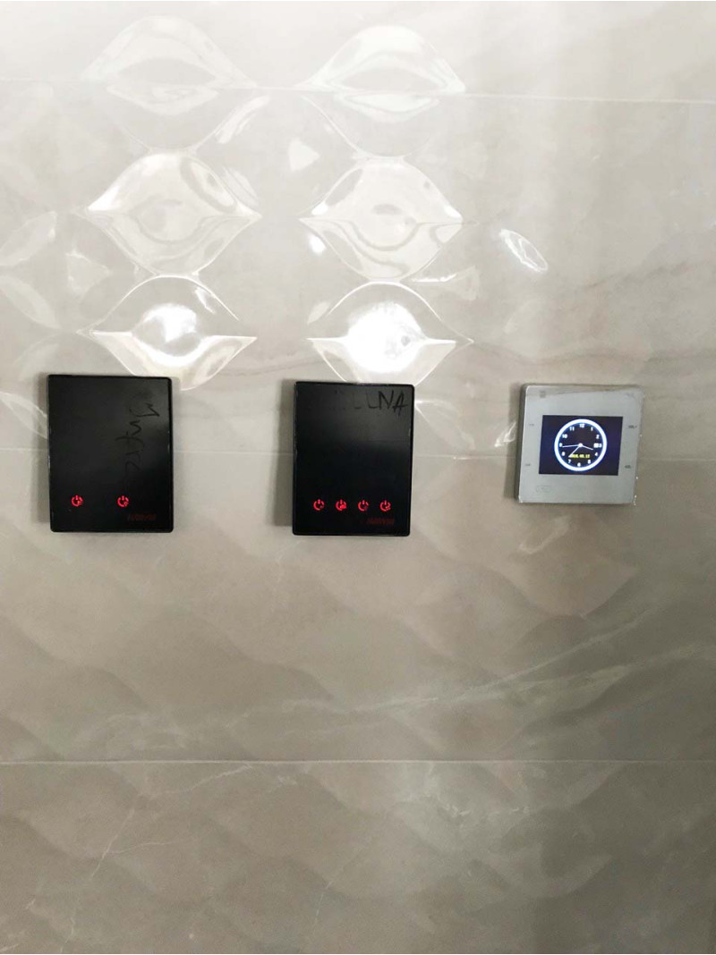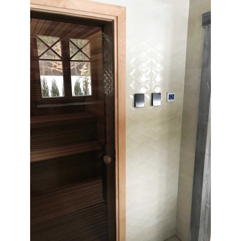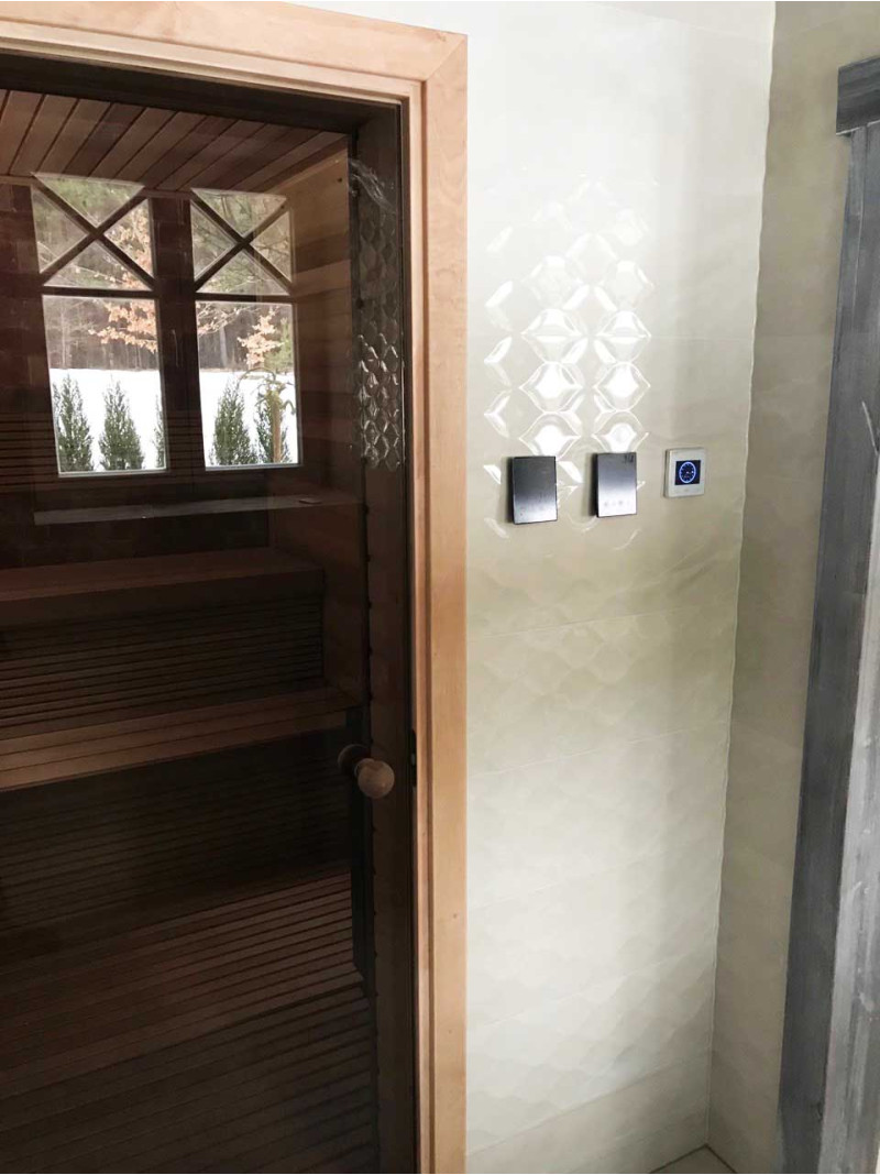 - Kaksi ohjauspaneelia, jotka on asennettu saunan ulkopuolelle - kahden erillisen tilan ohjaamiseen. Harvia Xenio Combi CX110C -ohjauspaneeli ja Harvia CX36I -infraohjauspaneeli.