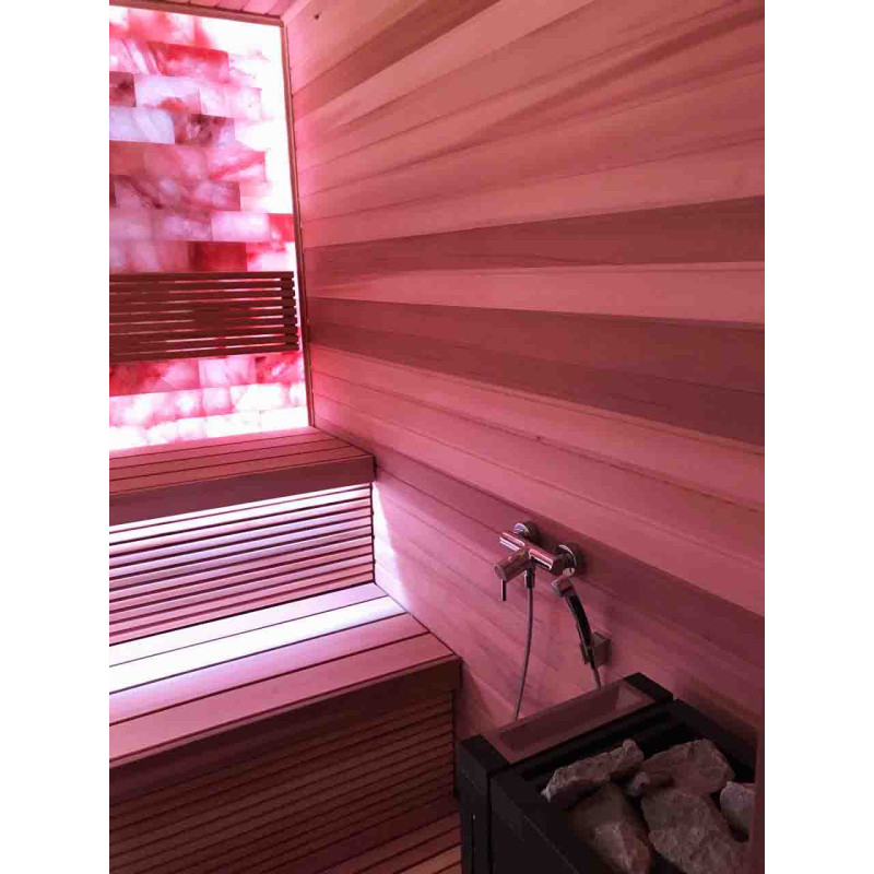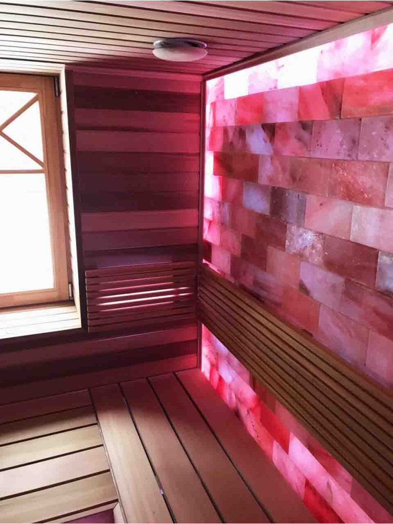 Himalajan suolojen suuri muuri parantaa huomattavasti ilmanlaatua ja saunan tunteita. Päästetyt negatiiviset ionit parantavat terveyttä, auttavat voittamaan monia vaivoja, kuten: keuhkoastma, keuhko- ja keuhkosairaudet, infarktin jälkeinen aika, kohonnut verenpaine, maha -suolikanavan haavaumat, gastriitti, kilpirauhasen sairaudet, ihottuma, erilaiset allergiat, hermosairaudet, auttaa voittamaan stressiä. Menettelyjen suorittamisesta saunassa on kaksi hyötyä.
