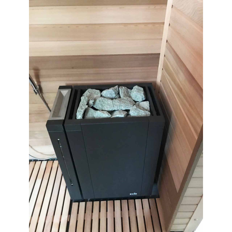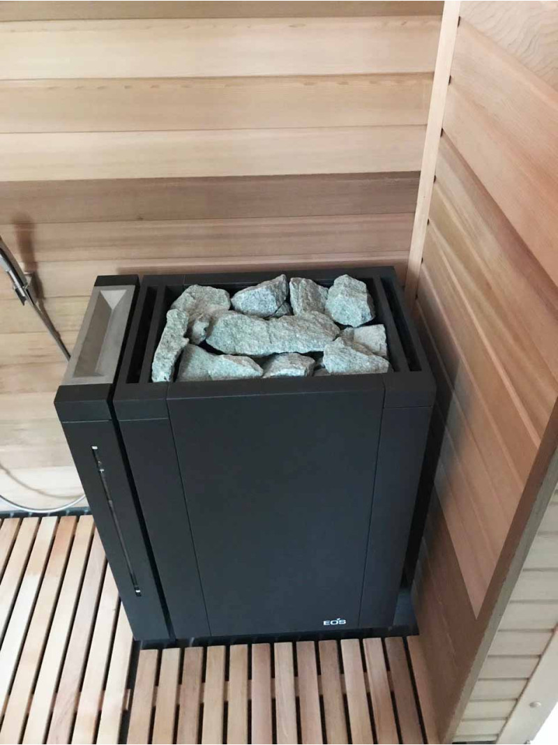 - Yksinomainen sähköuuni EOS Mythos S45 Vapor höyrygeneraattorilla. Uuniin mahtuu jopa 45 kg jadeiittikiviä. Tämä määrä riittää pitämään tasaisen lämpötilan ja nauttimaan saunasta mukavasti. Kätevä huolto - kivet eivät kosketa lämmityselementtejä. Ne voidaan vaihtaa poistamatta kiviä.