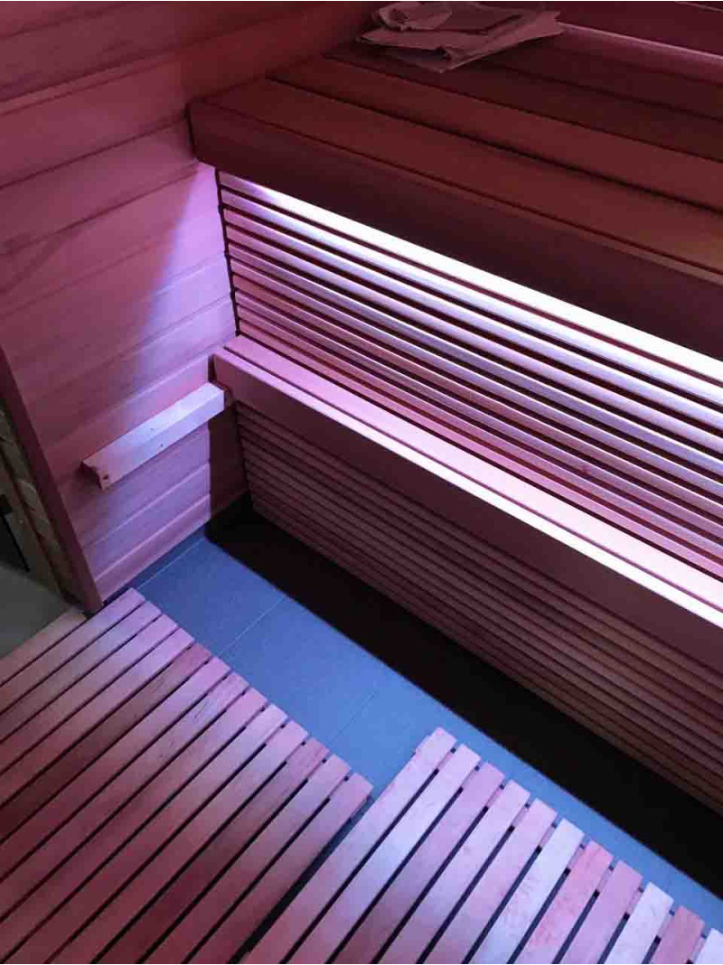 - LED -RGB -valaisin yläkerran alla, selkänojissa ja suolaseinän takana - värejä ohjataan erillisellä kaukosäätimellä.