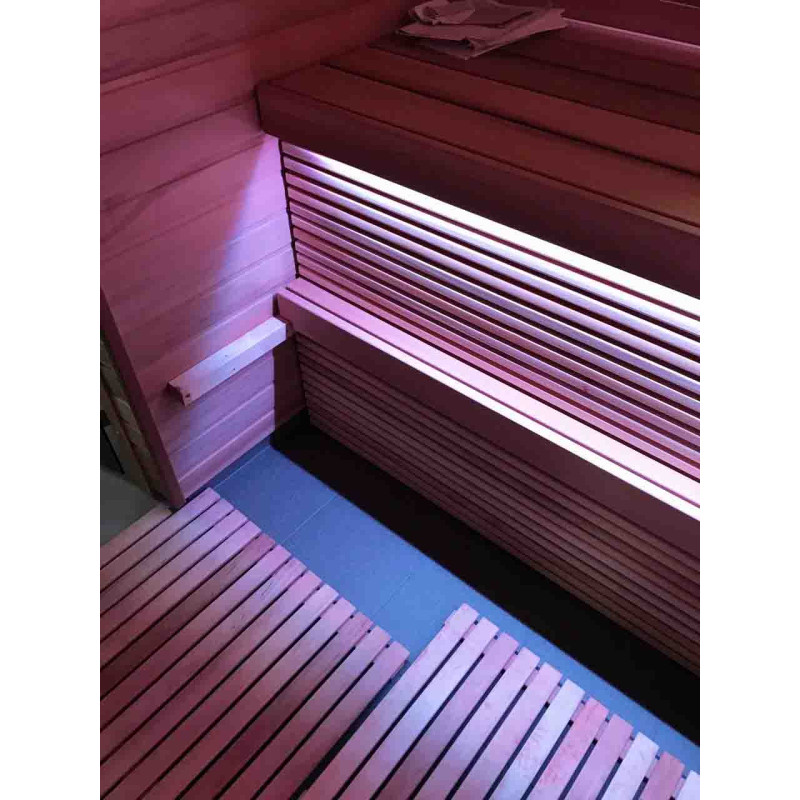 Tämä saunaprojekti on ainutlaatuinen siinä, että se yhdistää kahdenlaisia saunatyyppejä - perinteisen saunan ja infrapunasaunan.