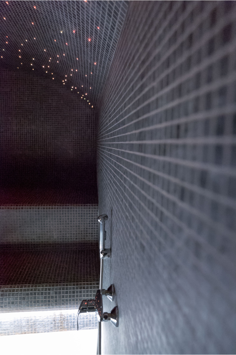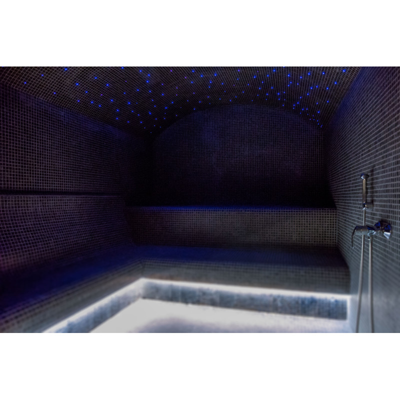 Penkkien alla - kosteutta ja lämpöä kestävä LED-valaistus, joka valaisee lattiaa. Kaarevaa kattoa valaisemaan valittiin valokuituvalojärjestelmä "Starry Sky", jonka värejä voidaan helposti ja nopeasti vaihtaa ohjauspaneelilla.