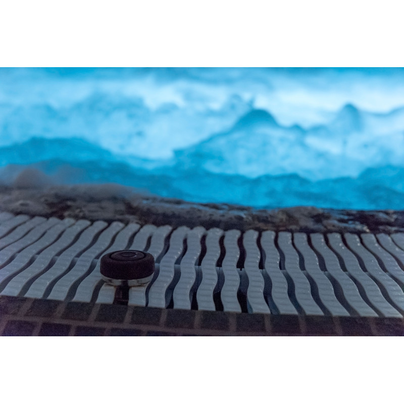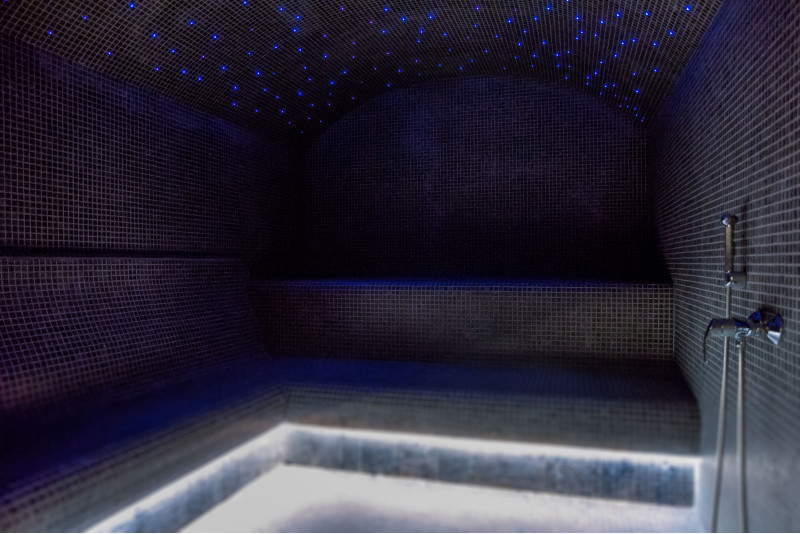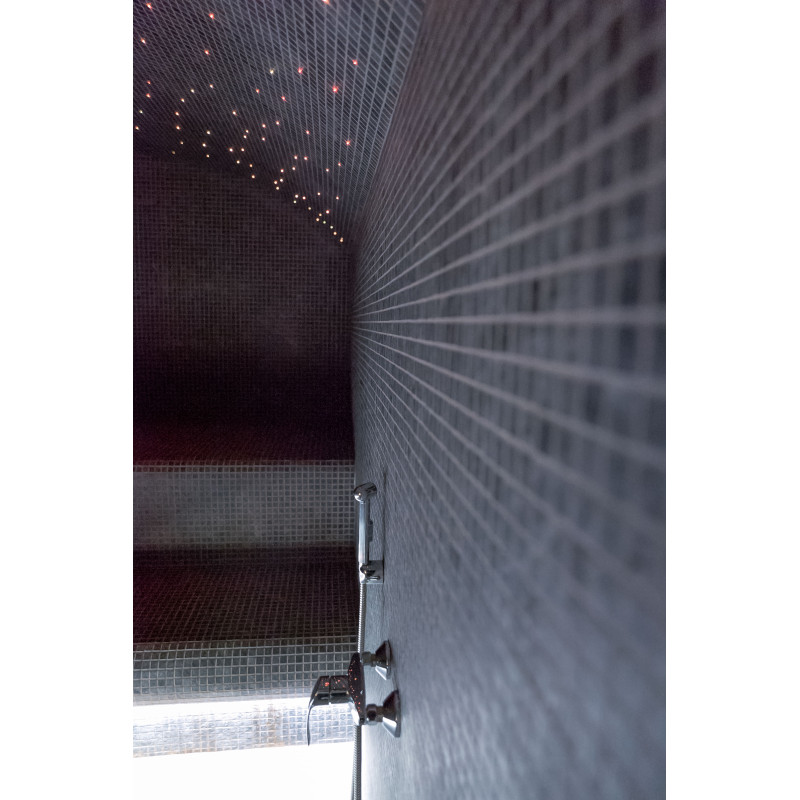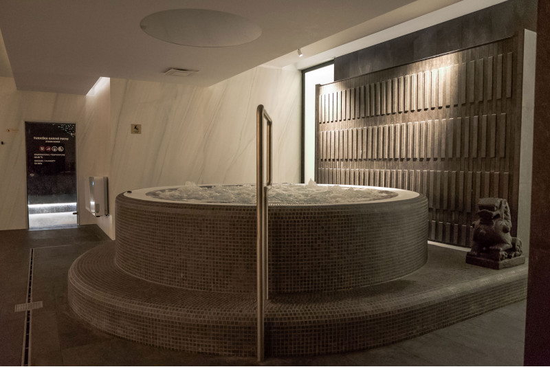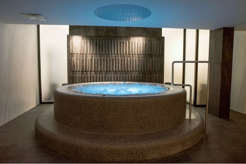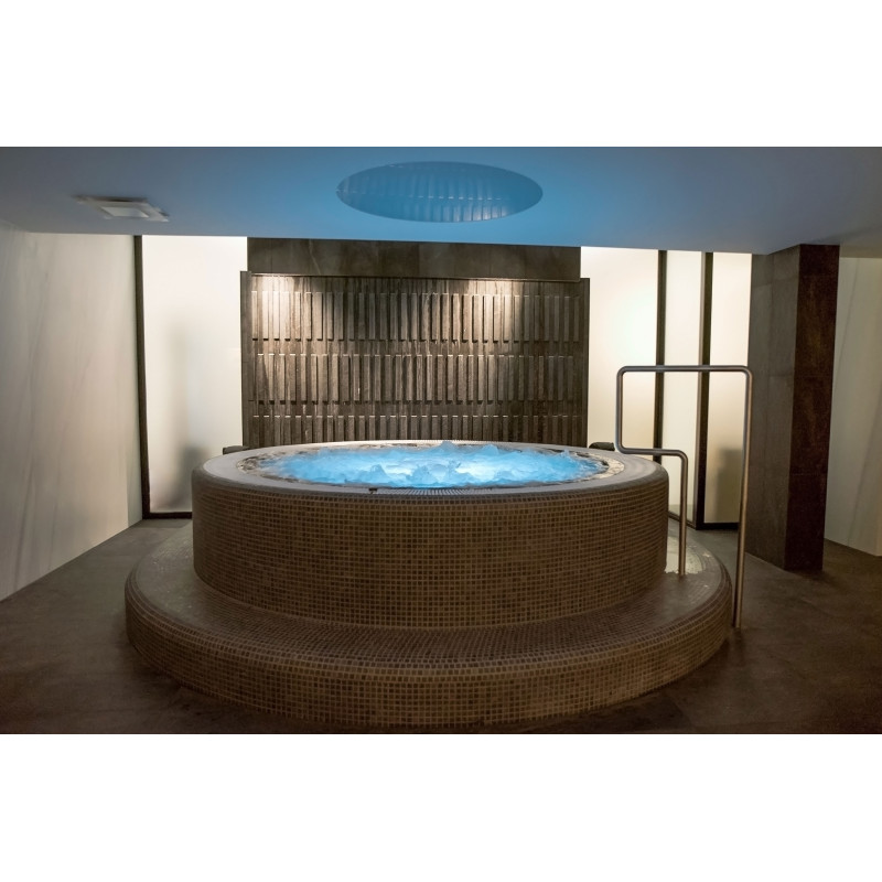 Siellä on tilava vesihieronta-allas, jonka muotit valmistetaan yksittäistilauksesta polystyreenivaahdosta. Allas on peitetty pienillä mosaiikkilaatoilla, jotka sopivat neutraalinväriseen sisustukseen. Uima-altaan ympärillä on askelma, ruostumattomasta teräksestä valmistettu kaide helpottaa ja turvallista pääsyä uima-altaalle.
