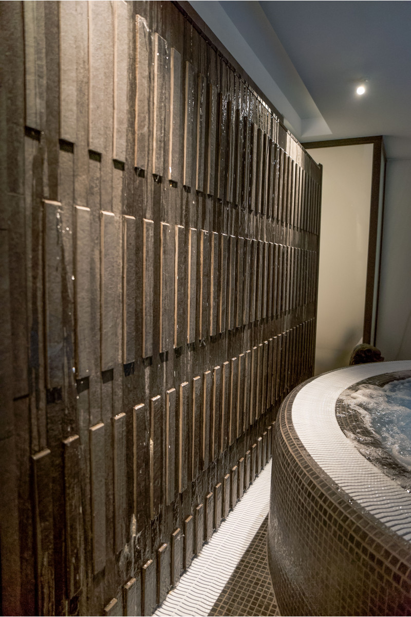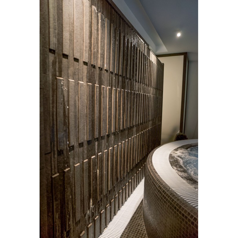 Allas on kehystetty juoksevan veden seinällä. Vedenkeräys-, vuoto-, suodatusjärjestelmät asennetaan. Putoava, tippuva vesi luo kylpylään trooppisen eksoottisen tyylin. Idän luoma ilmapiiri mahdollistaa ainutlaatuisen levon.
