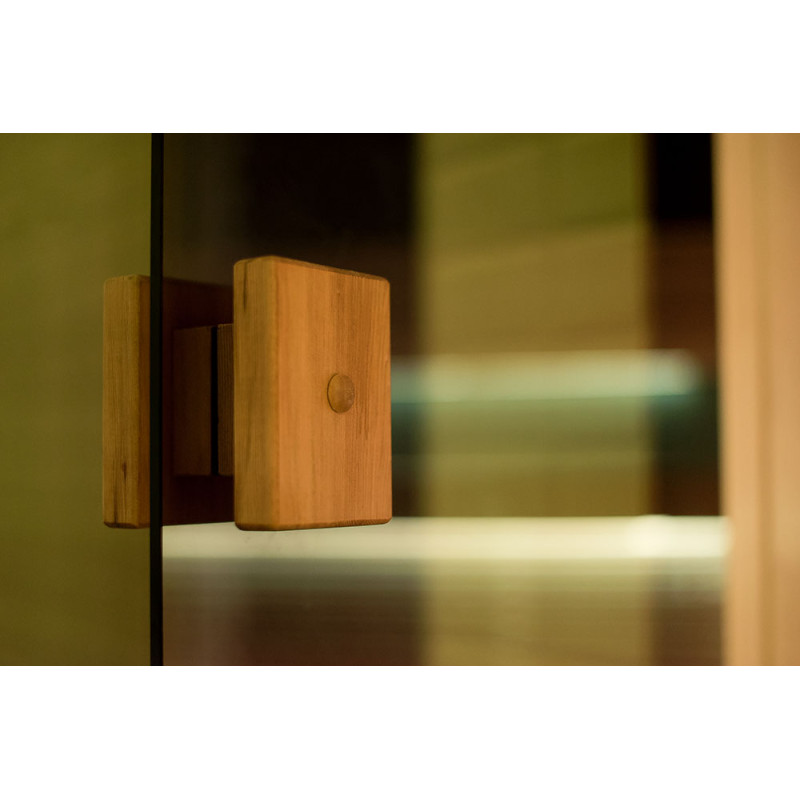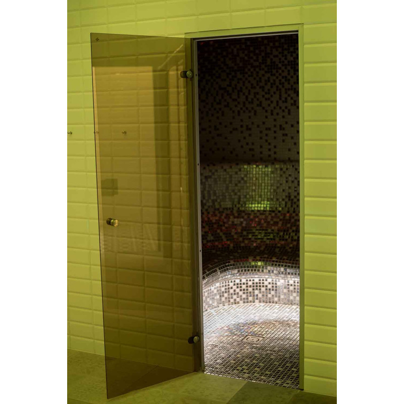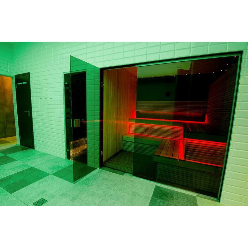 - Saunaan asennettu lasi -vitriini luo saumattoman tyylin, mikä laajentaa tilaa ja luo keveyden vaikutelman, antaa huoneelle valoa ja modernisuutta. Lasi-vitriinilasi - sävytetty, karkaistu, alumiinirunko,