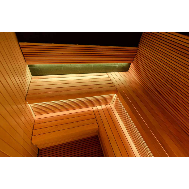 Abachi -puu on valittu saunahuoneeseen - se on ihoystävällinen, koska se ei pala tai kuumene, joten on mukava hemmotella itseäsi saunan nautinnoilla. Laitteet: