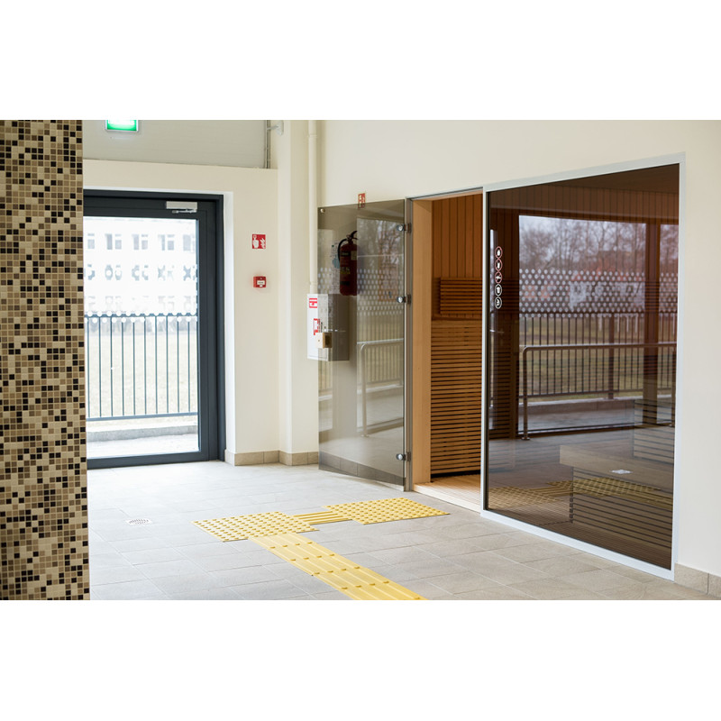 - Lasiovet - 8 mm karkaistu, sävytetty lasi, alumiinirunko.