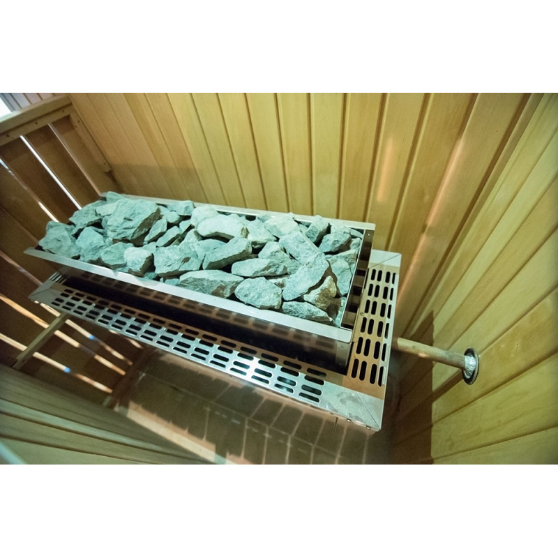 Saunan sivuraide ja sisätilojen puiset yksityiskohdat on valmistettu A-tyypin lehmuspuusta. Lämmittimelle on muodostettu aita. Puu on kyllästetty ja lakattu, öljytty - erityisesti valmistettu käytettäväksi kuumissa lämpötiloissa ja kosteudessa.