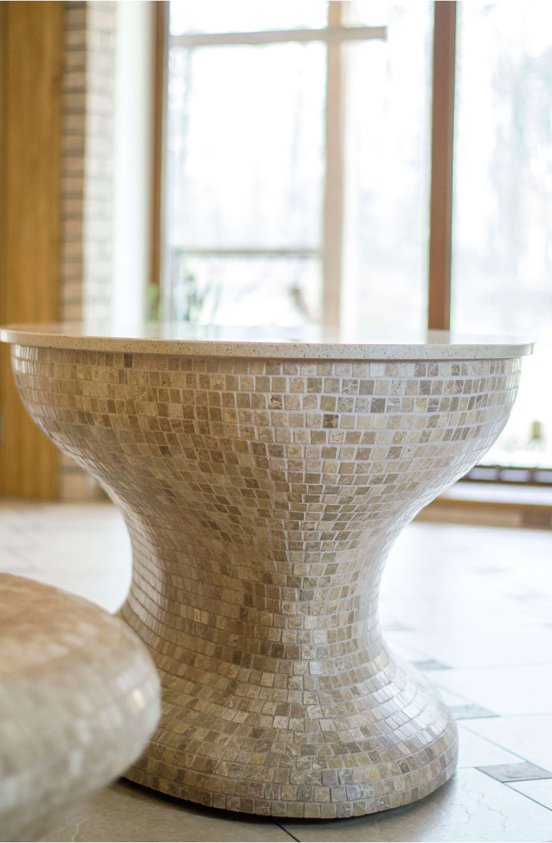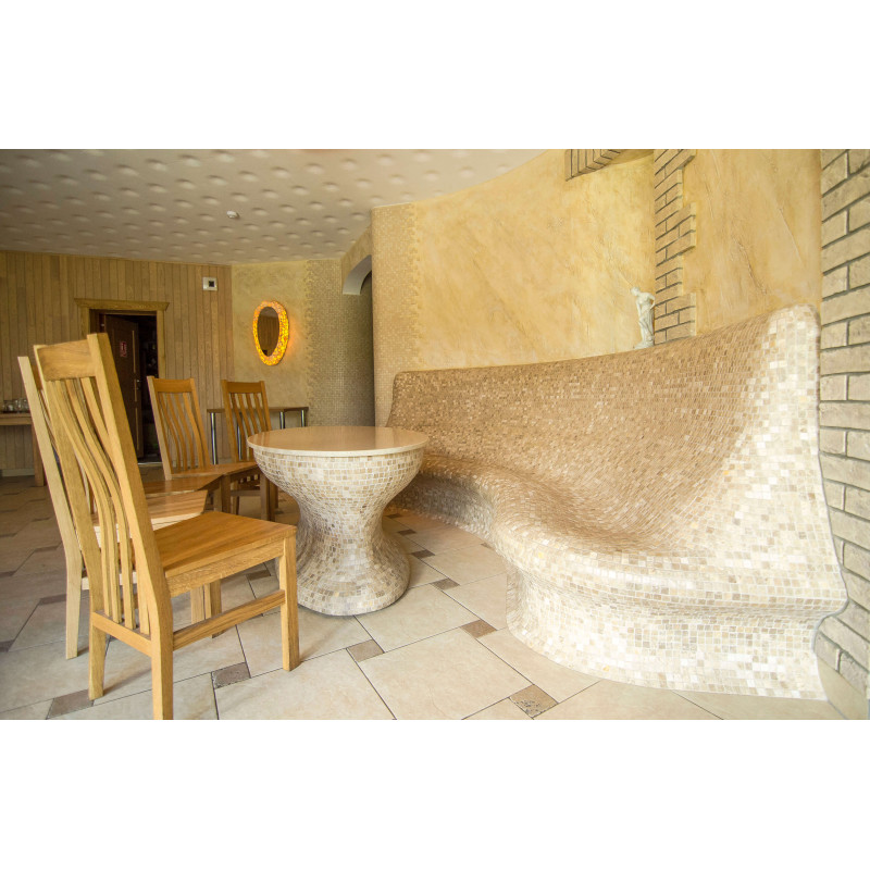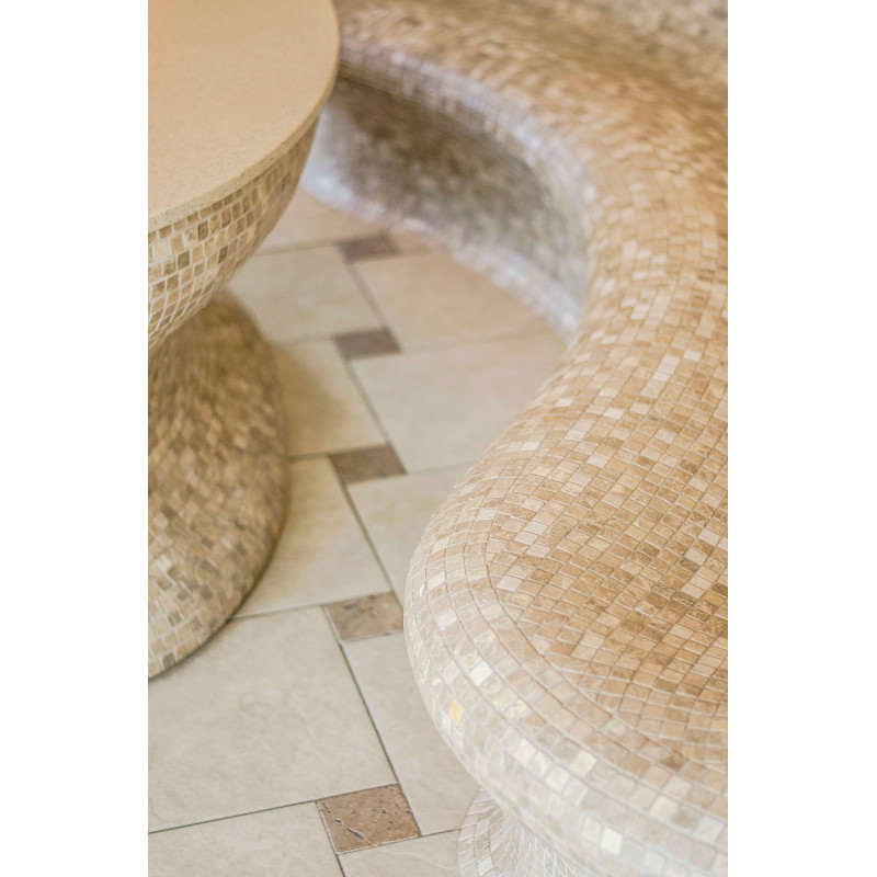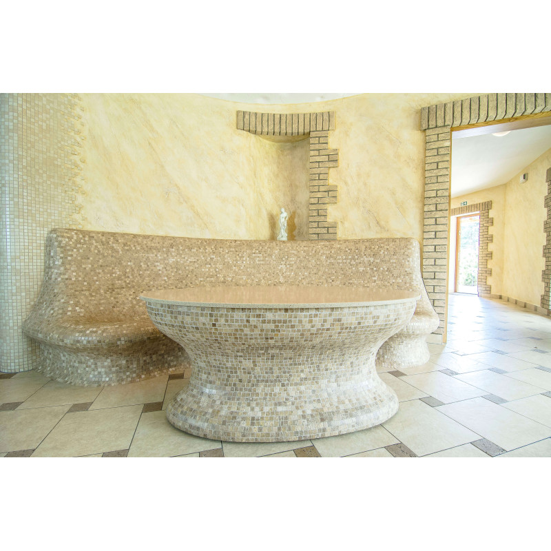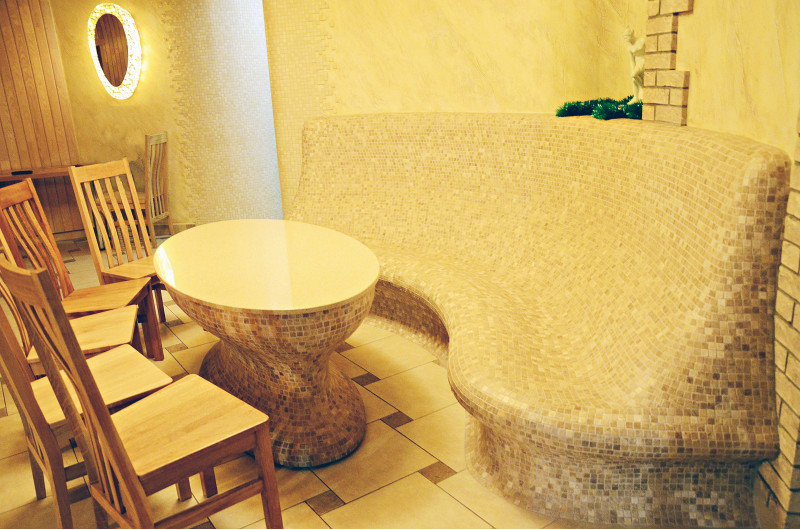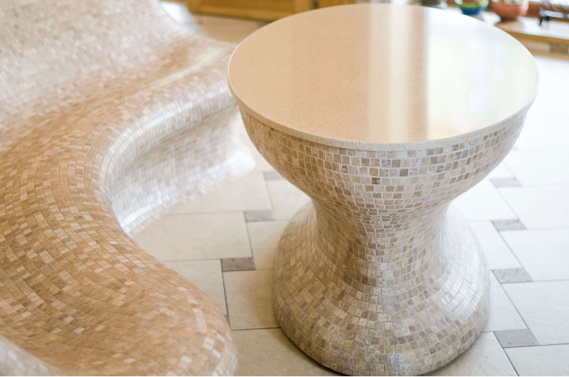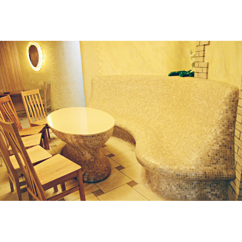 Lämmitetyt penkki- ja pöytämuodot valmistetaan yksilöllisesti erikoispuristetusta polystyreenistä. Työtaso - marmoria. Viimeistely - mosaiikkilaatat. Penkki lämmitetään lämmitysjärjestelmästä.