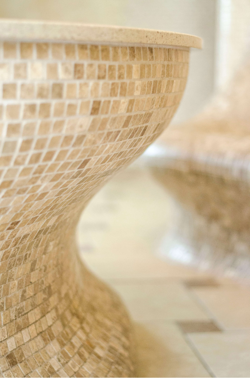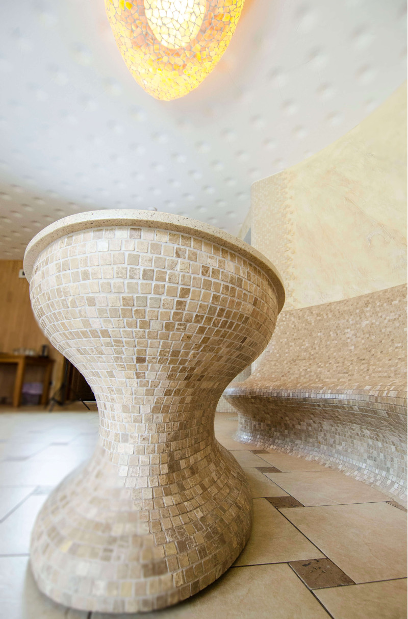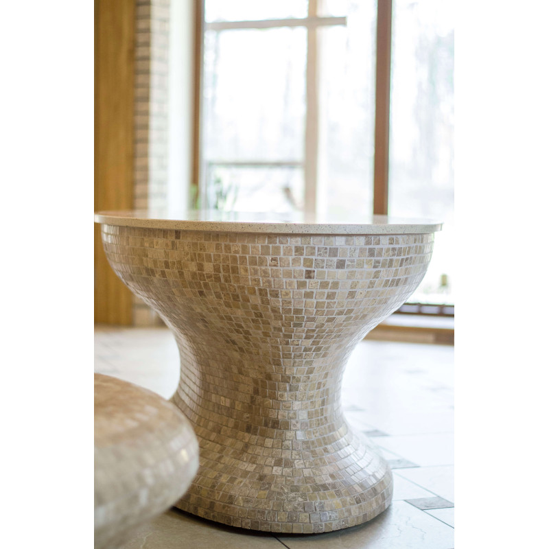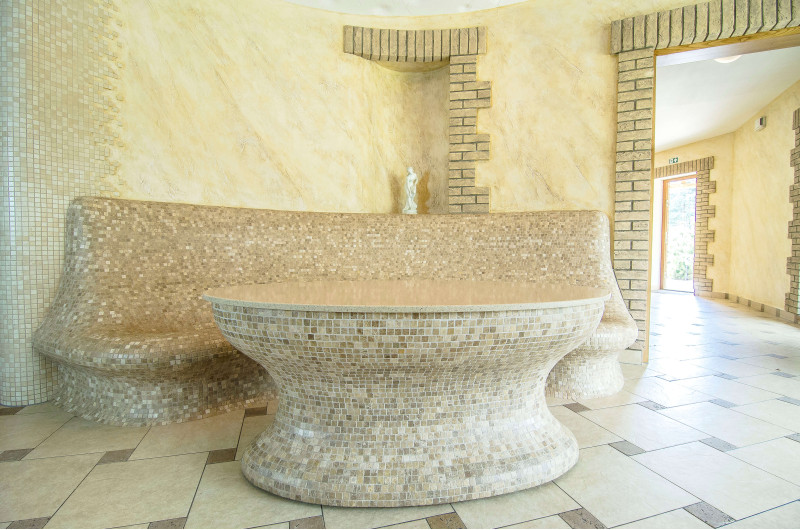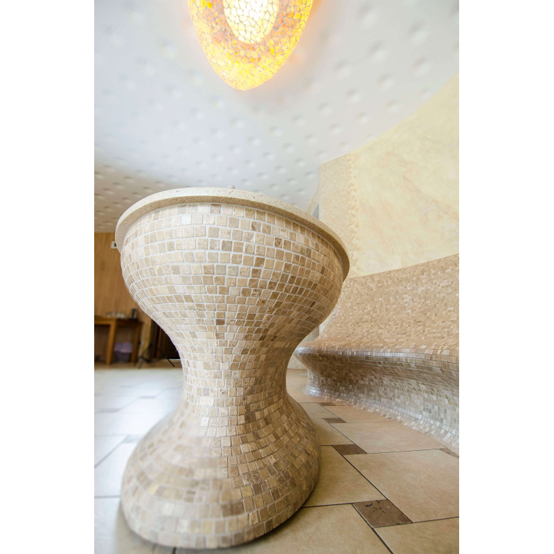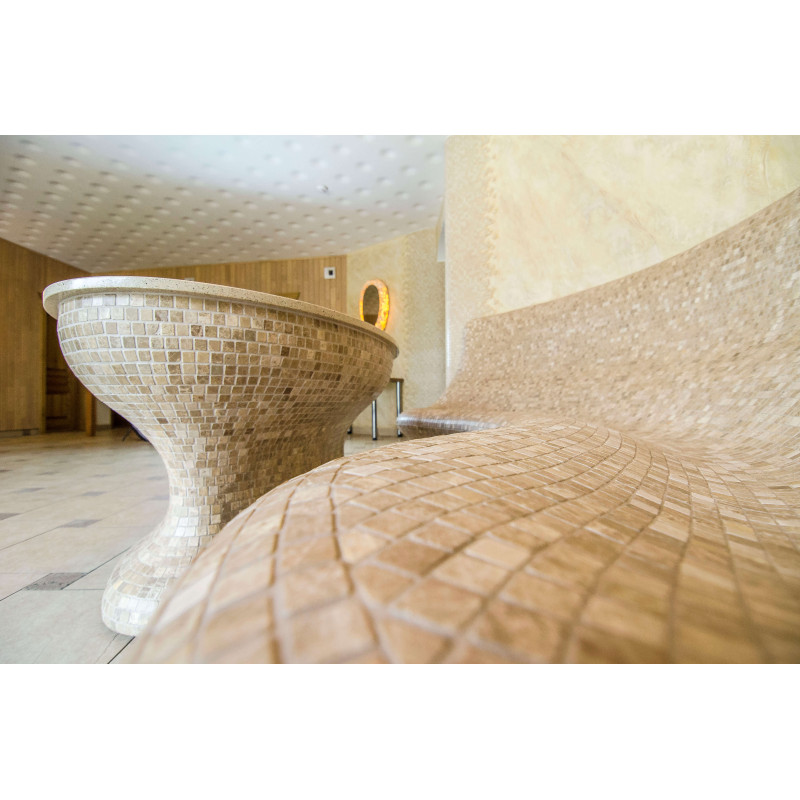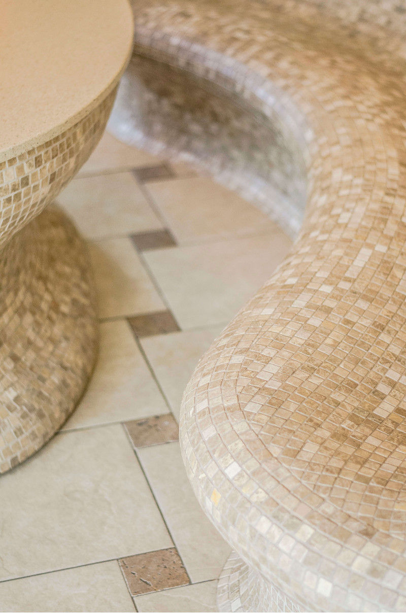 Lämmitetyt penkki- ja pöytämuodot valmistetaan yksilöllisesti erikoispuristetusta polystyreenistä. Työtaso - marmoria. Viimeistely - mosaiikkilaatat. Penkki lämmitetään lämmitysjärjestelmästä.