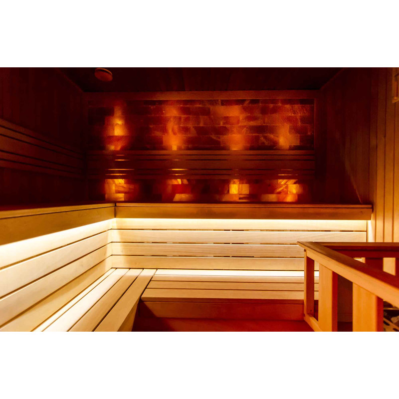 Himalajan suola saunassa ei vain näytä alkuperäiseltä, vaan sillä on myös monia terveydellesi myönteisiä ominaisuuksia. Se auttaa tukkeutuneissa poskionteloissa, puhdistaa kuonaa, säätelee verenpainetta, vähentää allergia- ja astmaoireita, kohottaa mielialaa ja antaa energiaa. Himalajan suola parantaa sisäilman laatua, neutraloi sähkömagneettista säteilyä, vähentää staattista sähköä ilmassa.