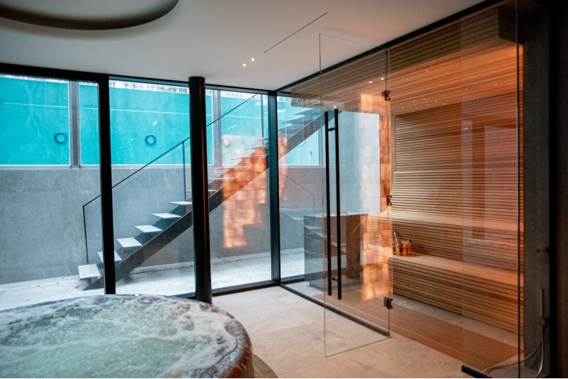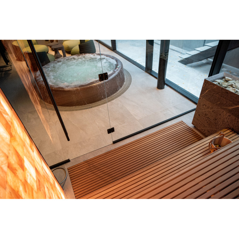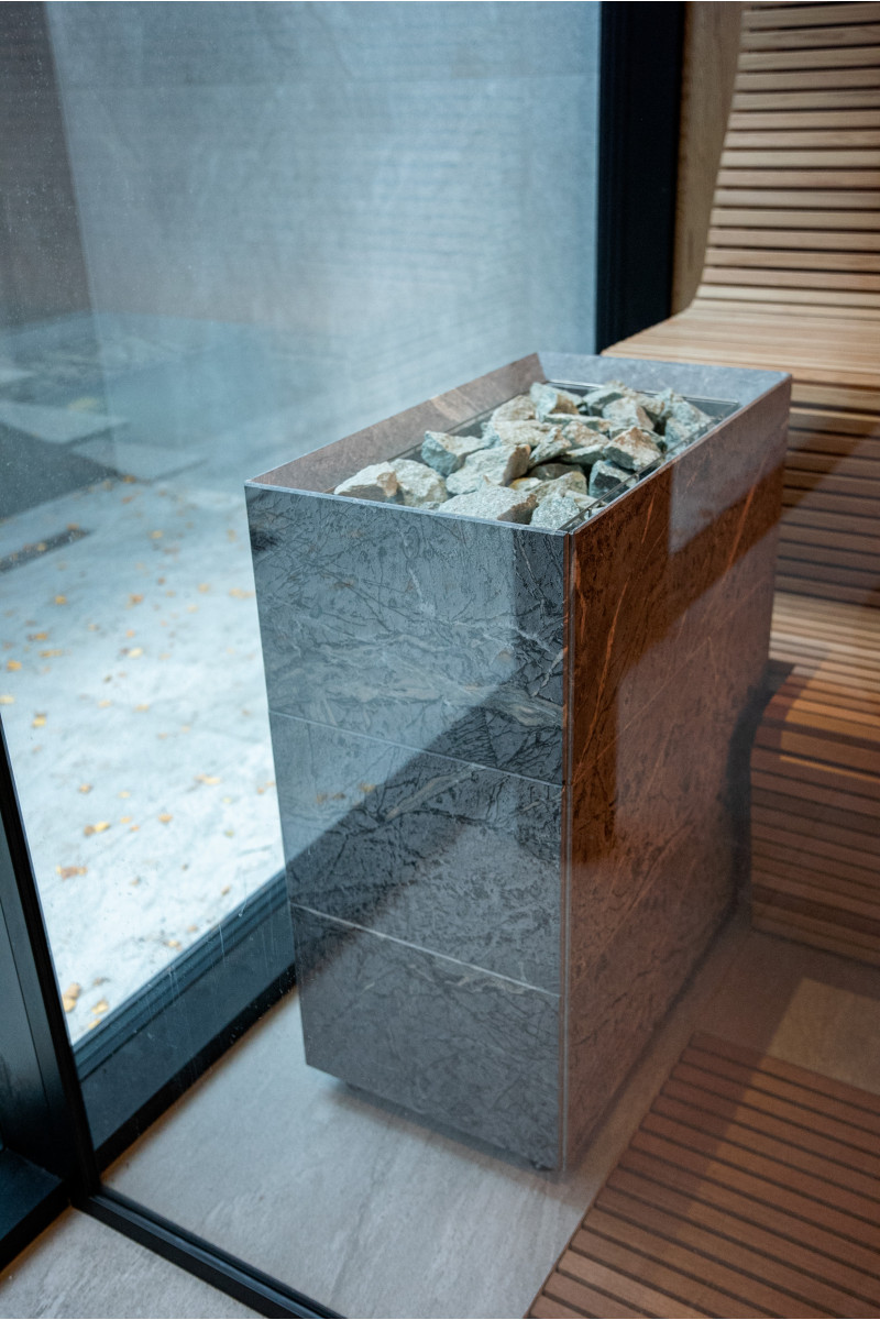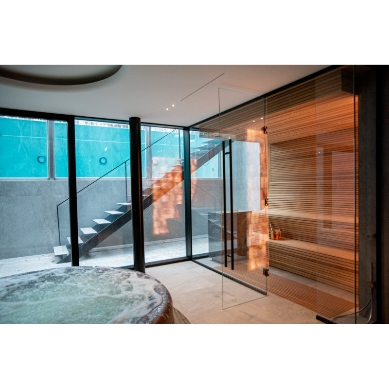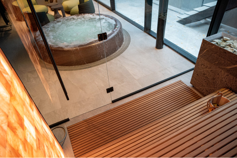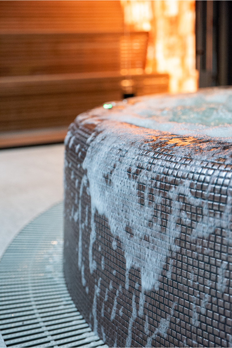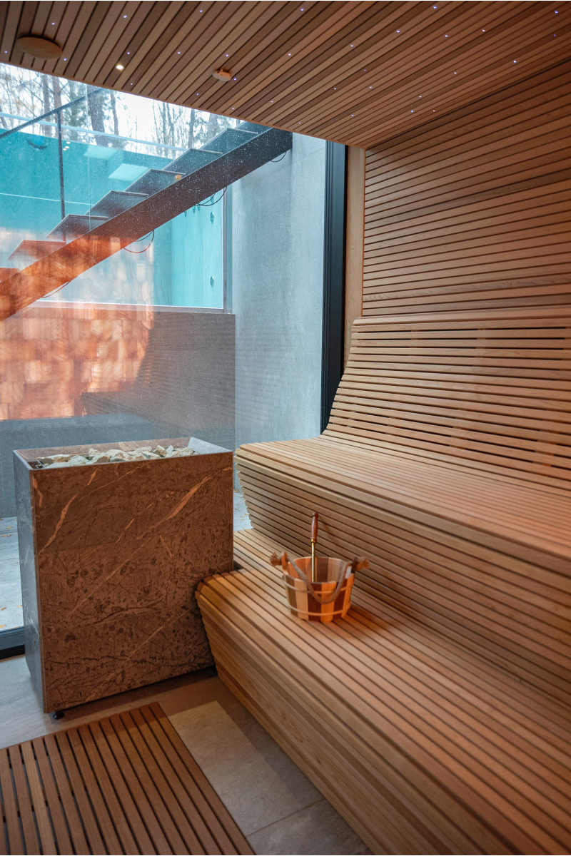 Yksilöllinen sauna, ulkoallas, kaatolaite ja poreallas