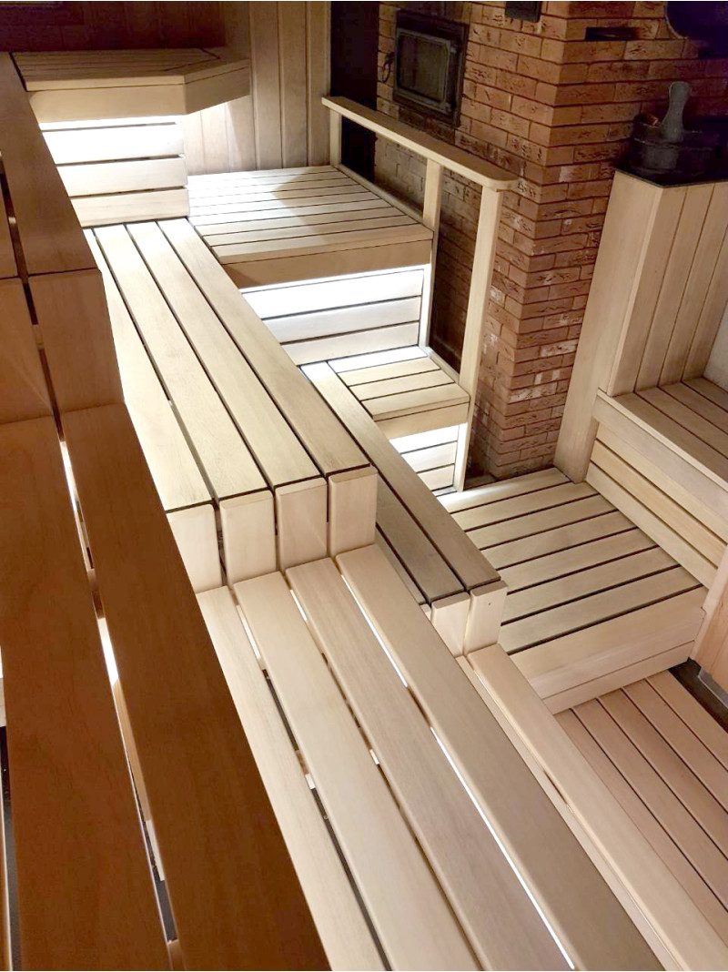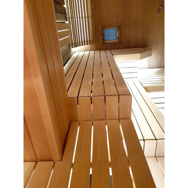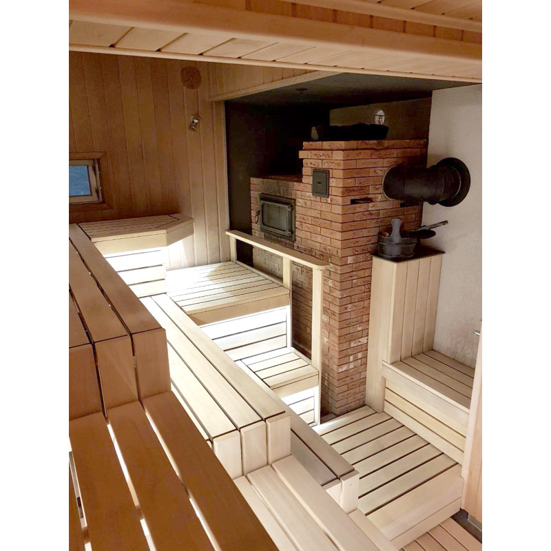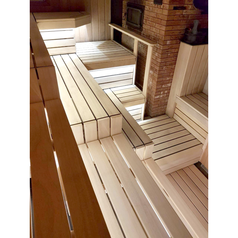 Puu on kyllästetty, suojattu korkealta kuumuudelta ja valmis pitkäaikaiseen käyttöön. Lauteet ja selkänojat on voideltu erikoisöljyllä saunapuulle.