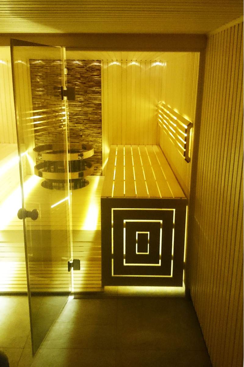 Saunan sisustukseen valittiin korkealaatuisin kalkkipuu.