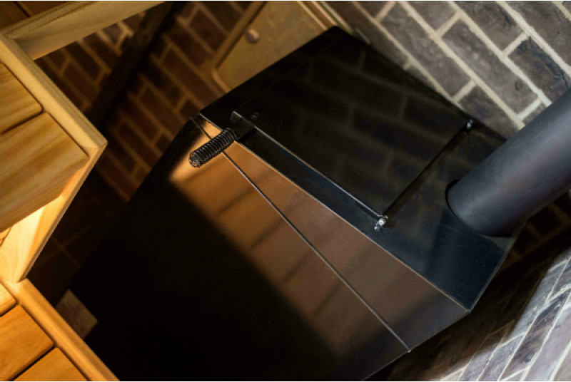 Kiukaan ympärille on asennettu lämpöä kestävä Minerit-levy turvallisuussyistä.