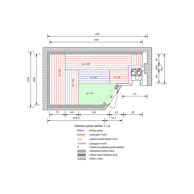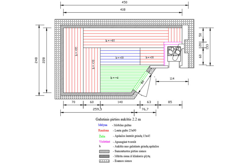 Katto- ja seinäverhous - korkein AB-lehmuspuulaji. Linden sivuraide on alhainen lämpökapasiteetti, mikä edistää saunan nopeaa lämpenemistä. Myös lehmuspuu sisältää runsaasti eteerisiä öljyjä, puusta tulee saunassa miellyttävä luonnollinen tuoksu.