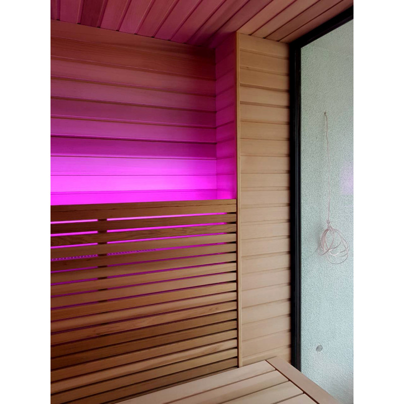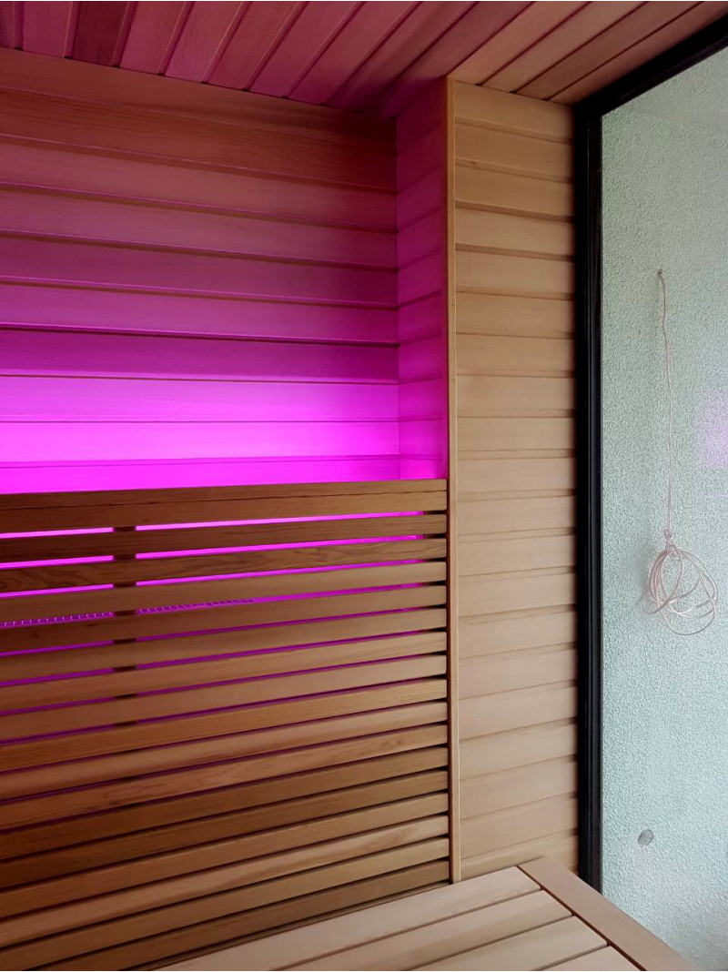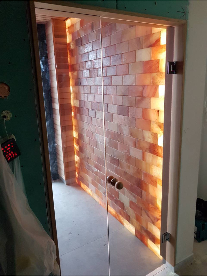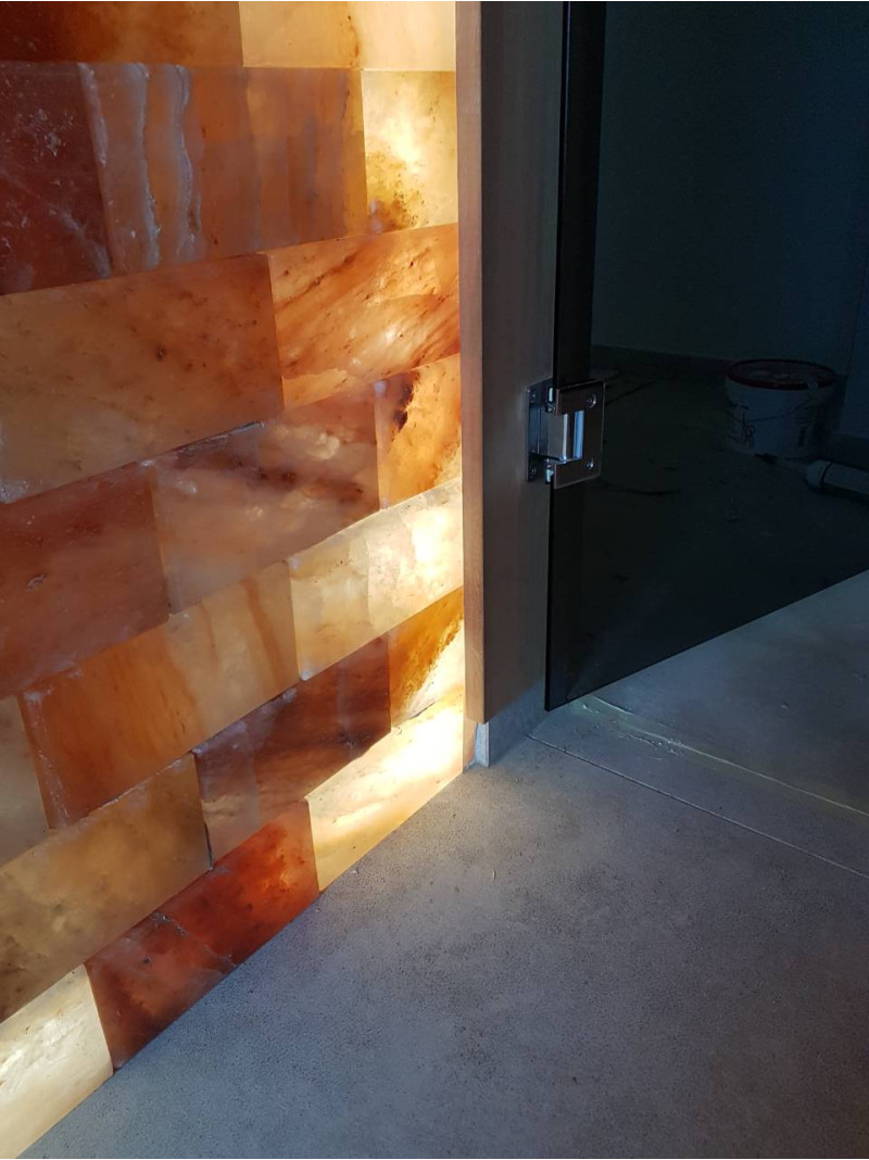 Sauna on varustettu ainutlaatuisen näköisellä Himalajan suolalohkojen seinällä. Tätä kuvaa parantaa entisestään suolalohkojen alla oleva sisäänrakennettu valkoinen lämmin valaistus, joka korostaa suolan väriä ja kuvioita. Himalajan suolaa ei käytetä saunassa vain sen kauneuden vuoksi, vaan sen väitetään vähentävän allergioiden ja astman oireita, kohottaa mielialaa ja antaa energiaa, neutraloi sähkömagneettista säteilyä, vähentää staattista sähköä ilmassa.