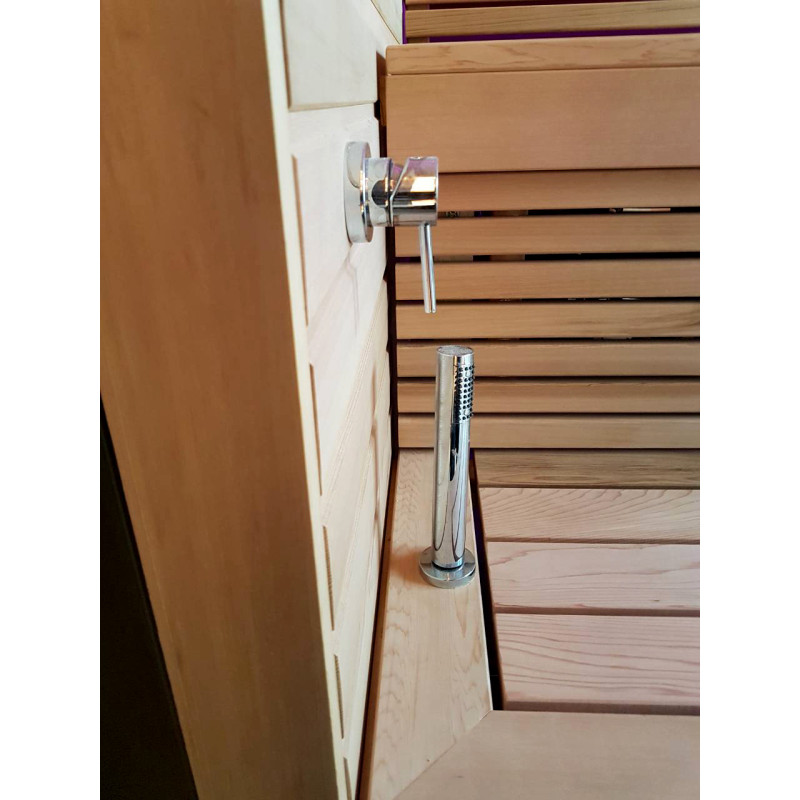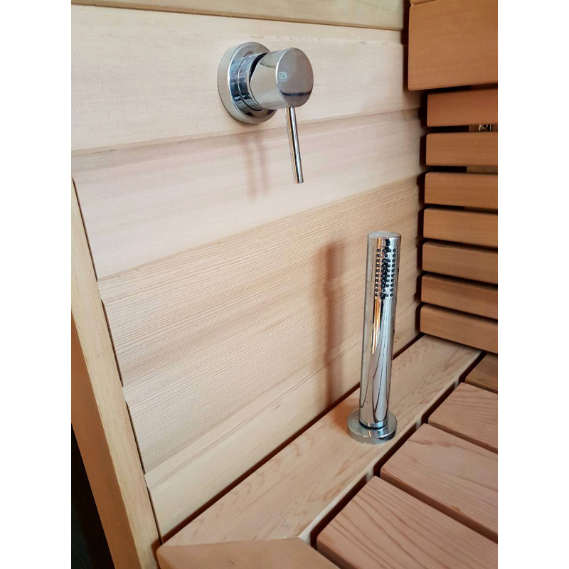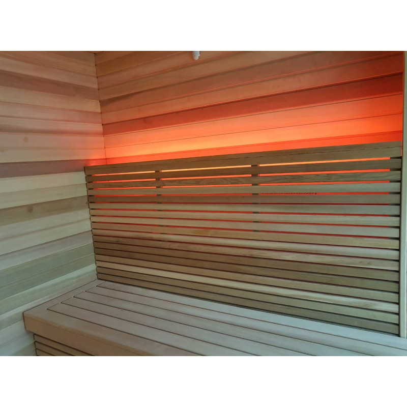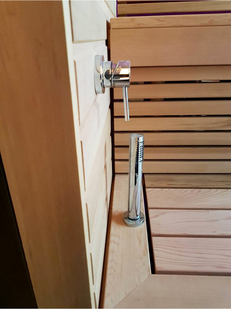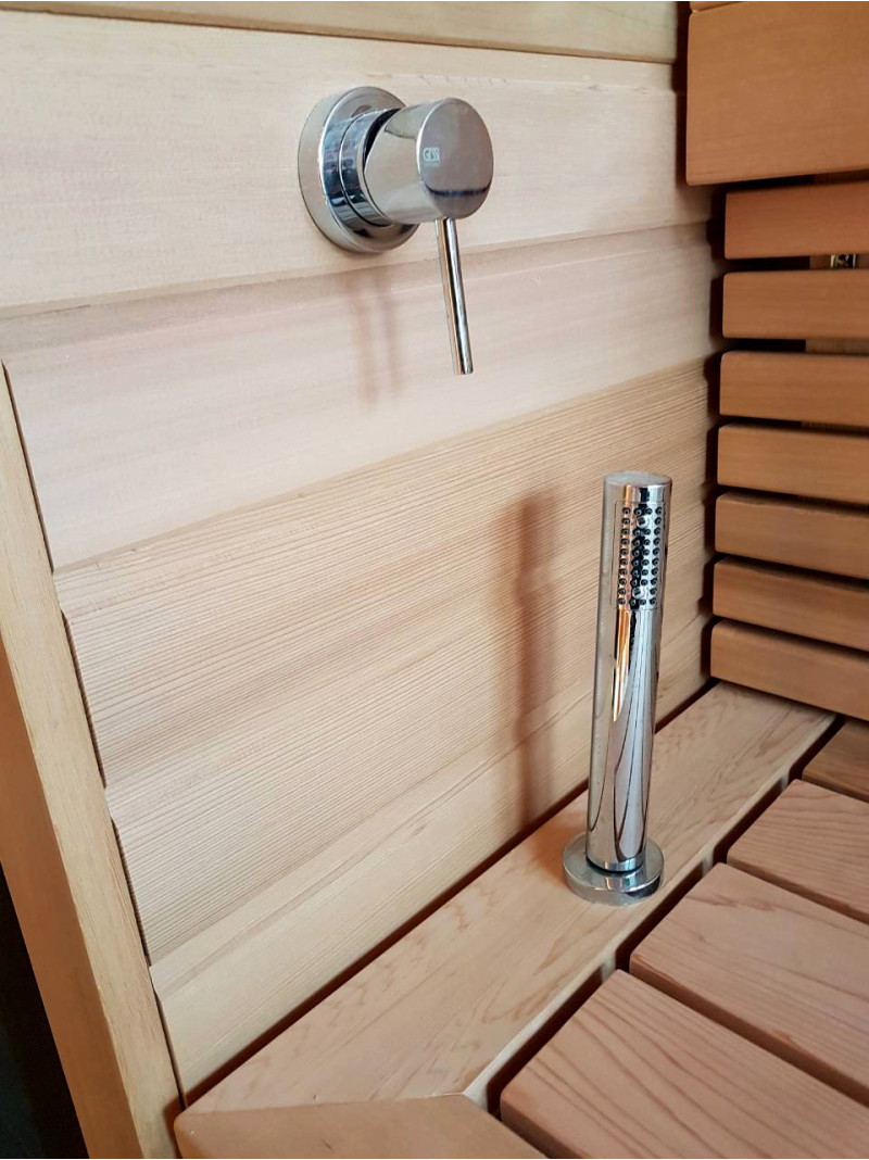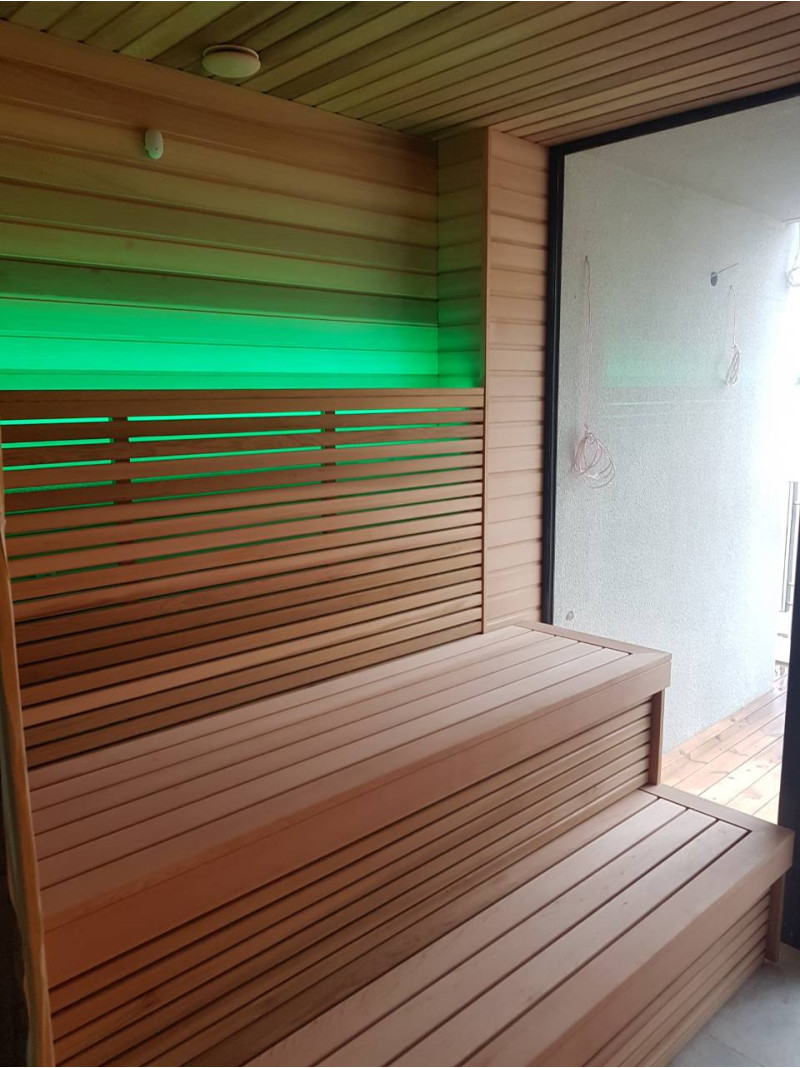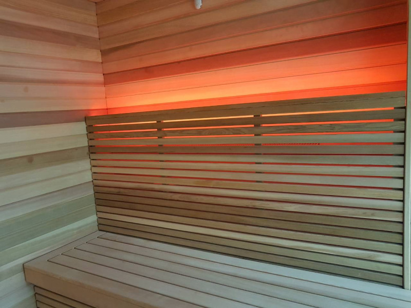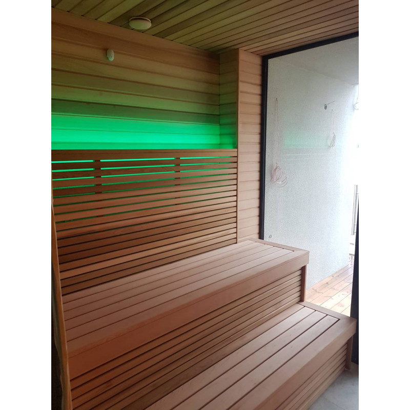 Saunan sisäpuiset yksityiskohdat on valmistettu setripuusta. Tämä puu on erittäin kestävää, kulutusta kestävää eikä muotoile. Korkeissa lämpötiloissa setriverhoilu ei eritä hartseja. Se heijastaa hyvin lämpöä, mikä on välttämätöntä saunassa ja kylvyssä. Setripuu erittää eteerisiä öljyjä ja luo luonnollisen aromaterapian vaikutuksen.
