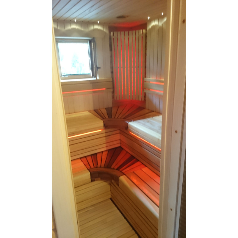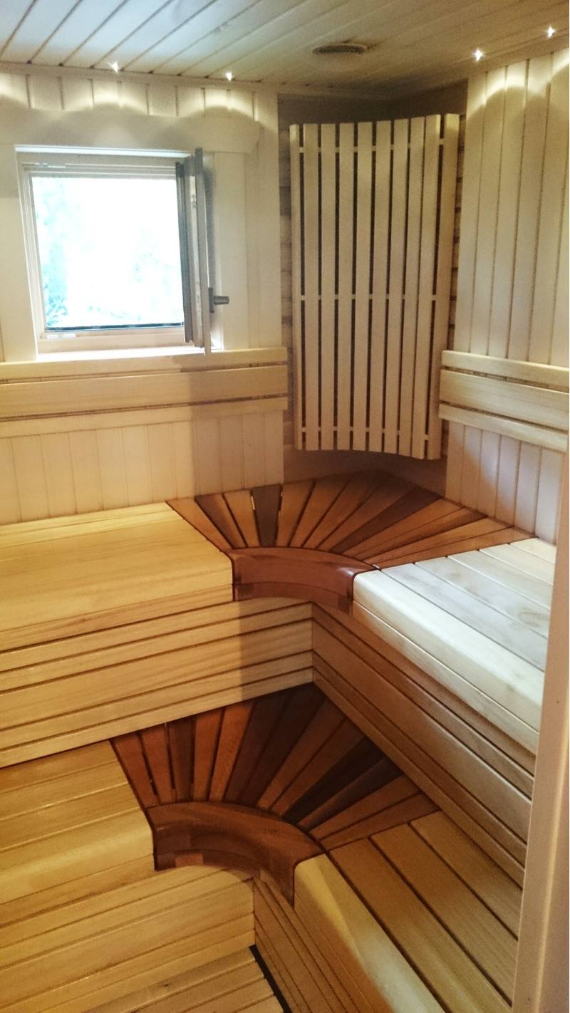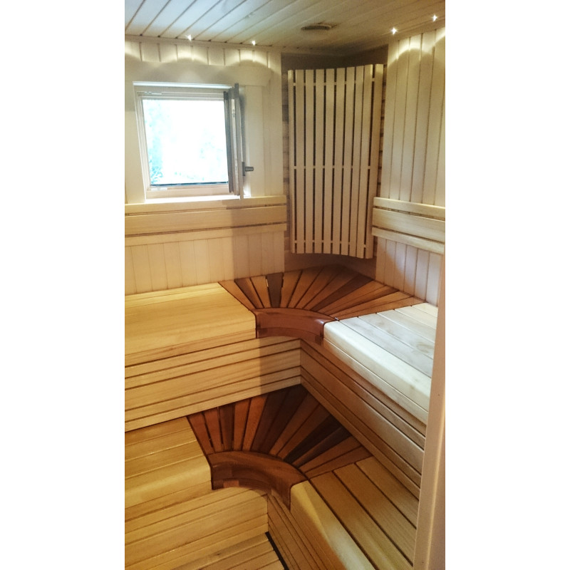 Saunan sisustus on korkealaatuista lehmus- ja setripuuta, lauteet abachi- ja setripuusta. Tämä puu sopii parhaiten penkkeihin, koska se lämpenee vähän, on turvallista ja miellyttävää koskettaa sellaiseen puuhun.