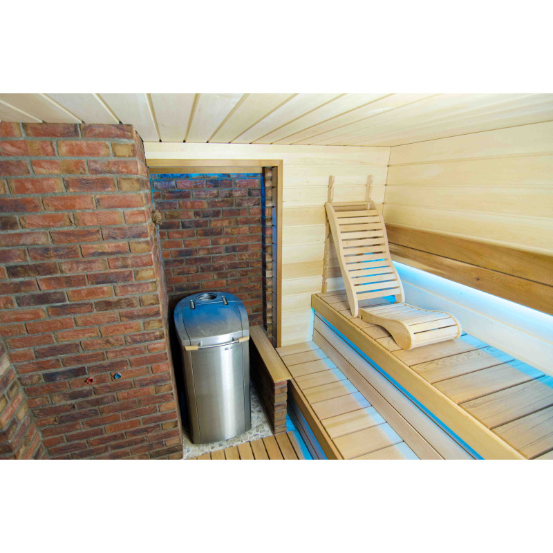 Erityinen yksityiskohta saunassa on rentouttavat käsintehdyt lauteet. Tyylikkäät ja tyylikkäät penkit on valmistettu korkealaatuisesta puusta. Se ei vain tuo saunan sisustukseen lisämukavuutta, vaan se on myös erityisen mukava, sillä niiden korkeutta ja asentoa on mahdollista säätää maksimaalisen rentoutumisen saavuttamiseksi.