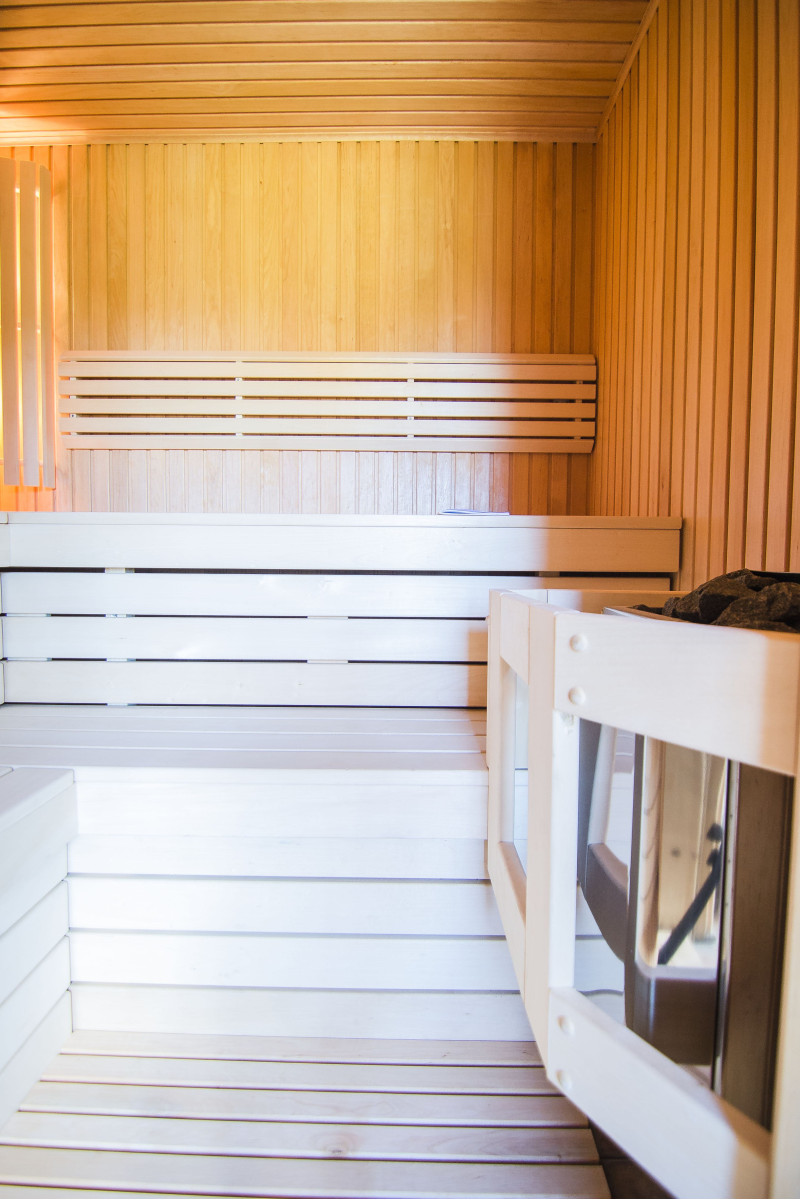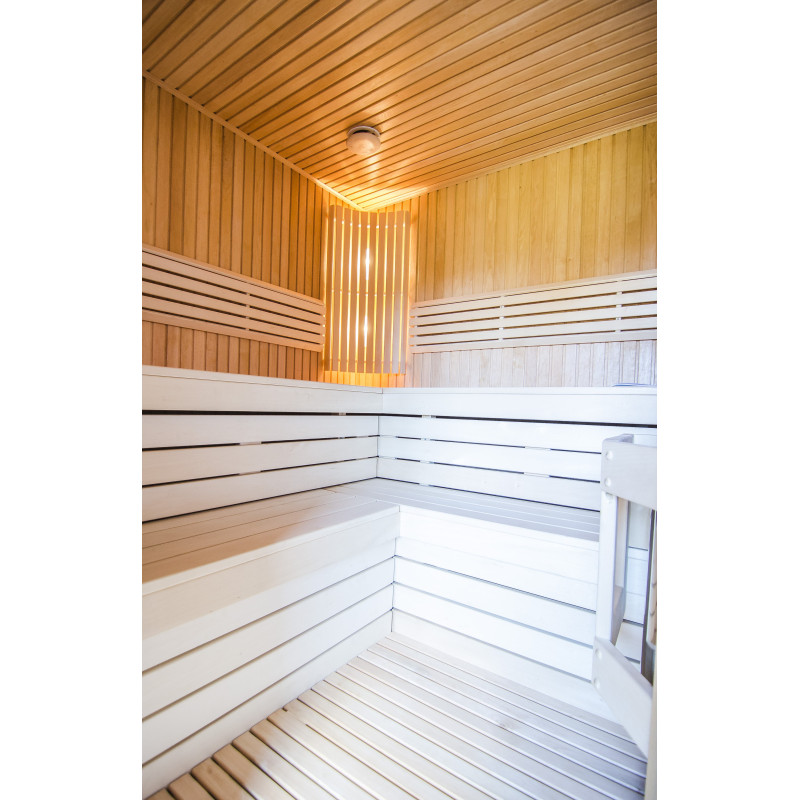 Valaistus - kaksi Harvia-lamppua asennettuna selkänojan alle.