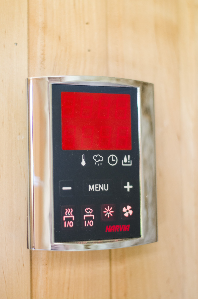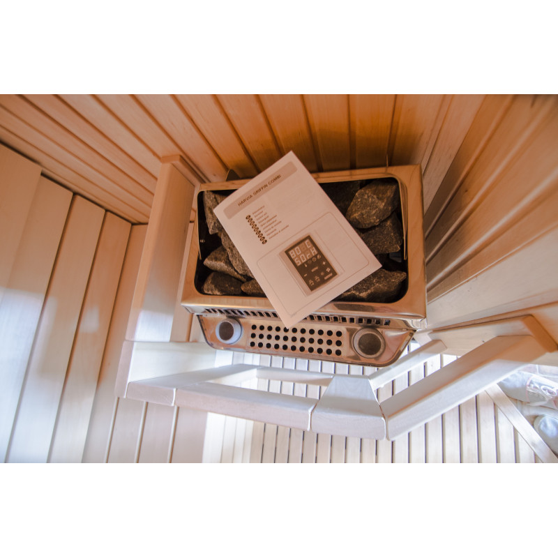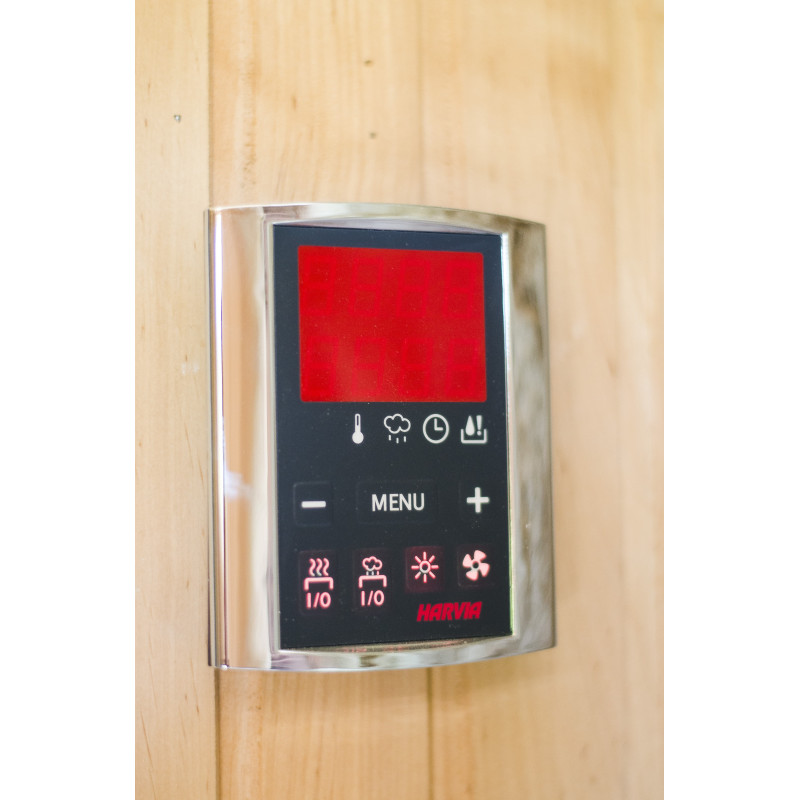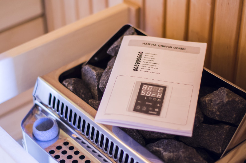 Kiukaassa on erillinen ohjausyksikkö Harvia Griffin Combi CG170C Combi-kiukaan sekä höyrystimellä varustetun kiukaan ohjaamiseen. Ohjauspaneeli asennetaan saunan ulkopuolelle.