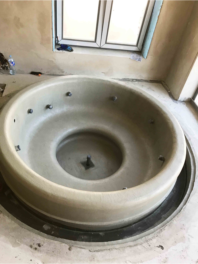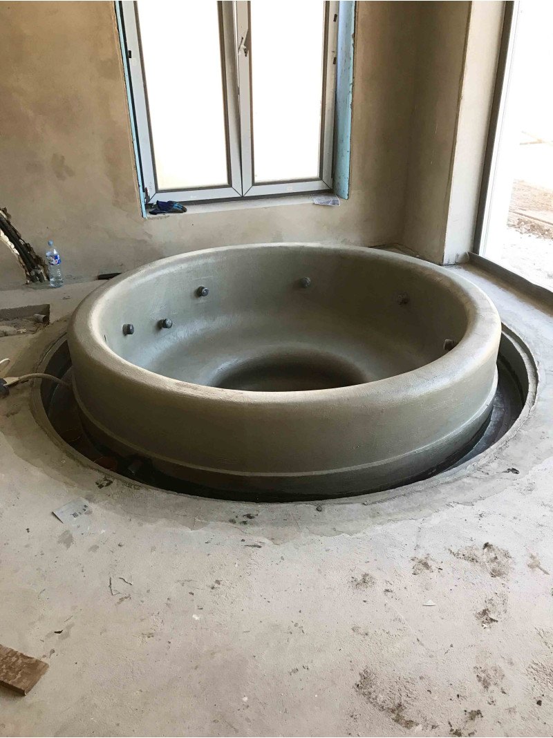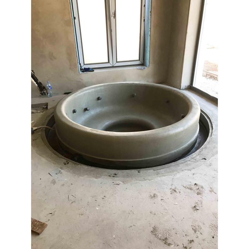 Allas on muodoltaan pyöreä, ja siinä on istumapaikkoja koko altaan ympärillä. Altaan sisäpinnat muodostettiin jatkuvatoimisella leikkaavalla XPS 300 polystyreenillä. Se on erittäin vahva ja kosteutta ja painetta kestävä materiaali.