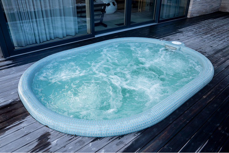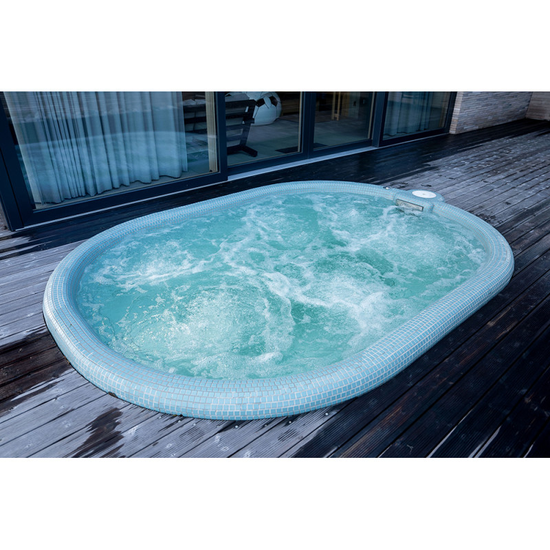 Asensimme ylellisen vesihieronta-altaan yksityiskäyttöön. Nyt jokainen voi pitää uima-altaan kotonaan. Se on vaihtoehto yksinkertaiselle kylpyammeelle tai suihkulle luoden minikylpylän kotiisi.