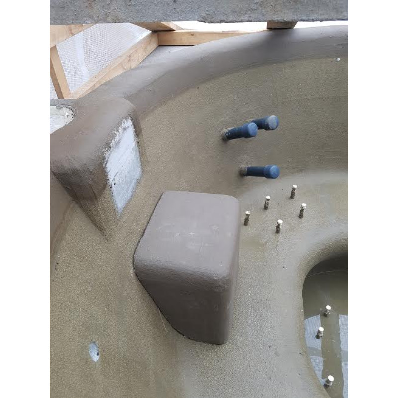Allasmuotit valmistetaan erikoispuristetusta polystyreenistä yksilöllisen tilauksen mukaan. Sisätilat on päällystetty murskatuilla lasimosaiikkilaatoilla.